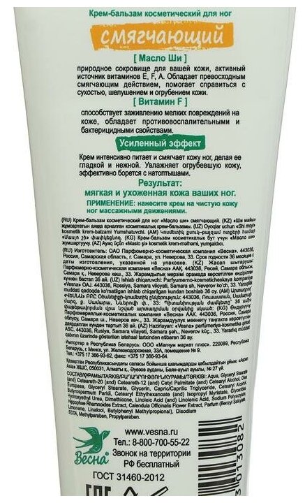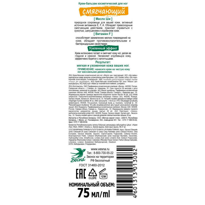 Крем для ног Весна Смягчающий 75мл интересное: