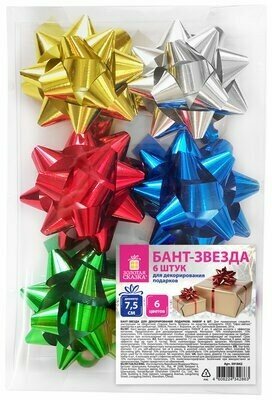 Купить Бант-звезда d7,5см для подарка, набор 6 шт, металлизированные цвета ассорти, золотая сказка, 591842