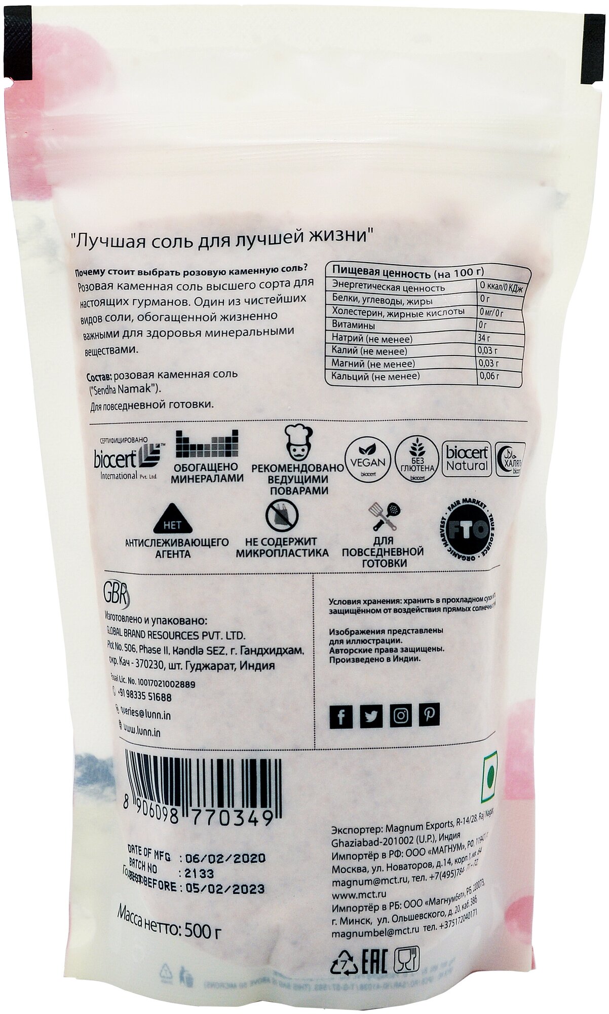 Соль розовая каменная Lunn, 500 г интересное: