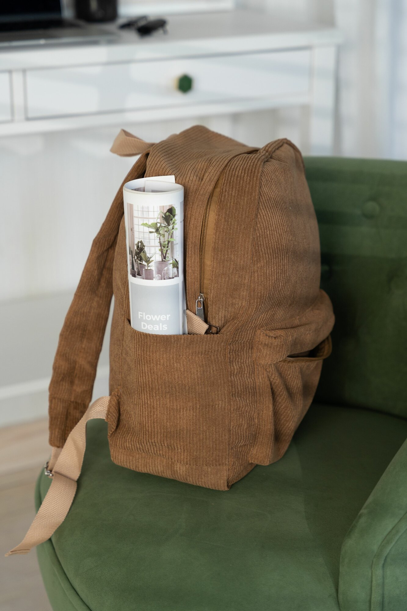 Рюкзак вельветовый, коричневый