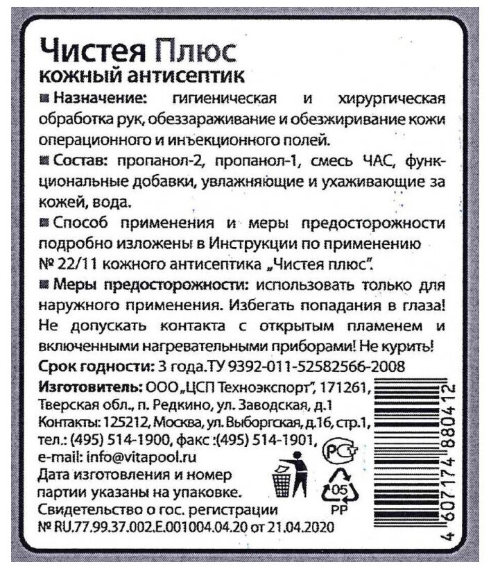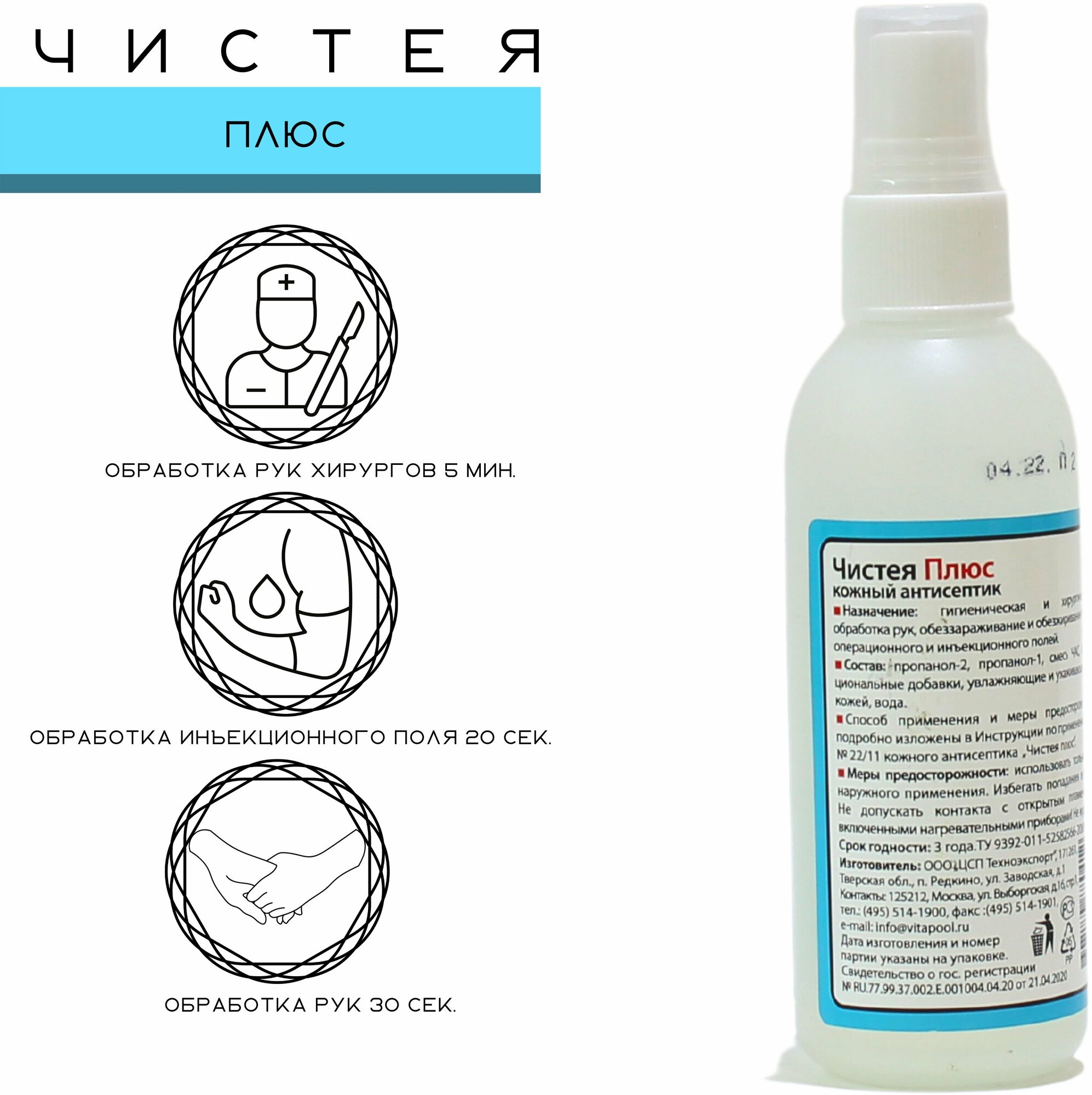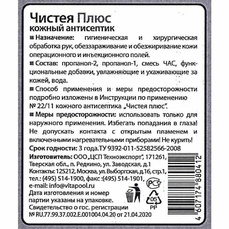 Антисептическое средство Чистея Плюс 100 мл. спрей интересное: