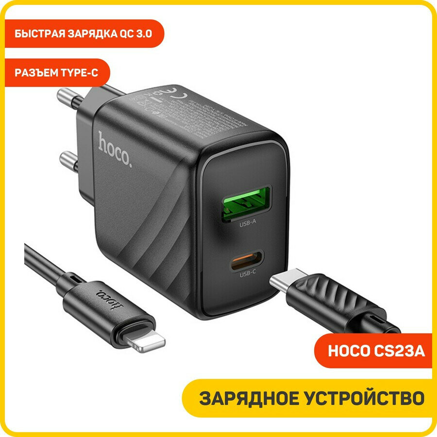 Купить Сетевое зарядное устройство USB Hoco CS23A (30W/QC 3.0/порт USB-C PD/кабель USB-C-Lightning) <черный>