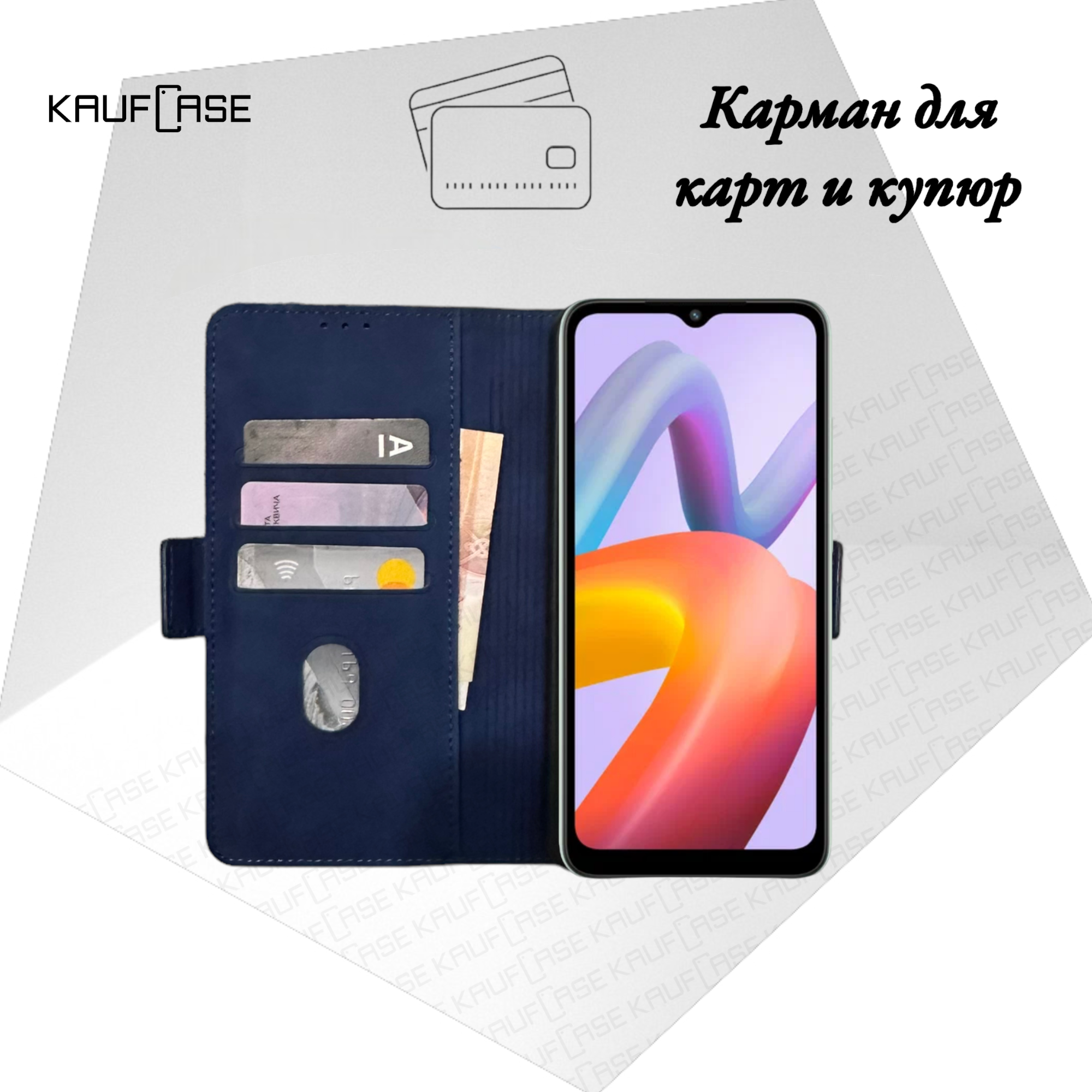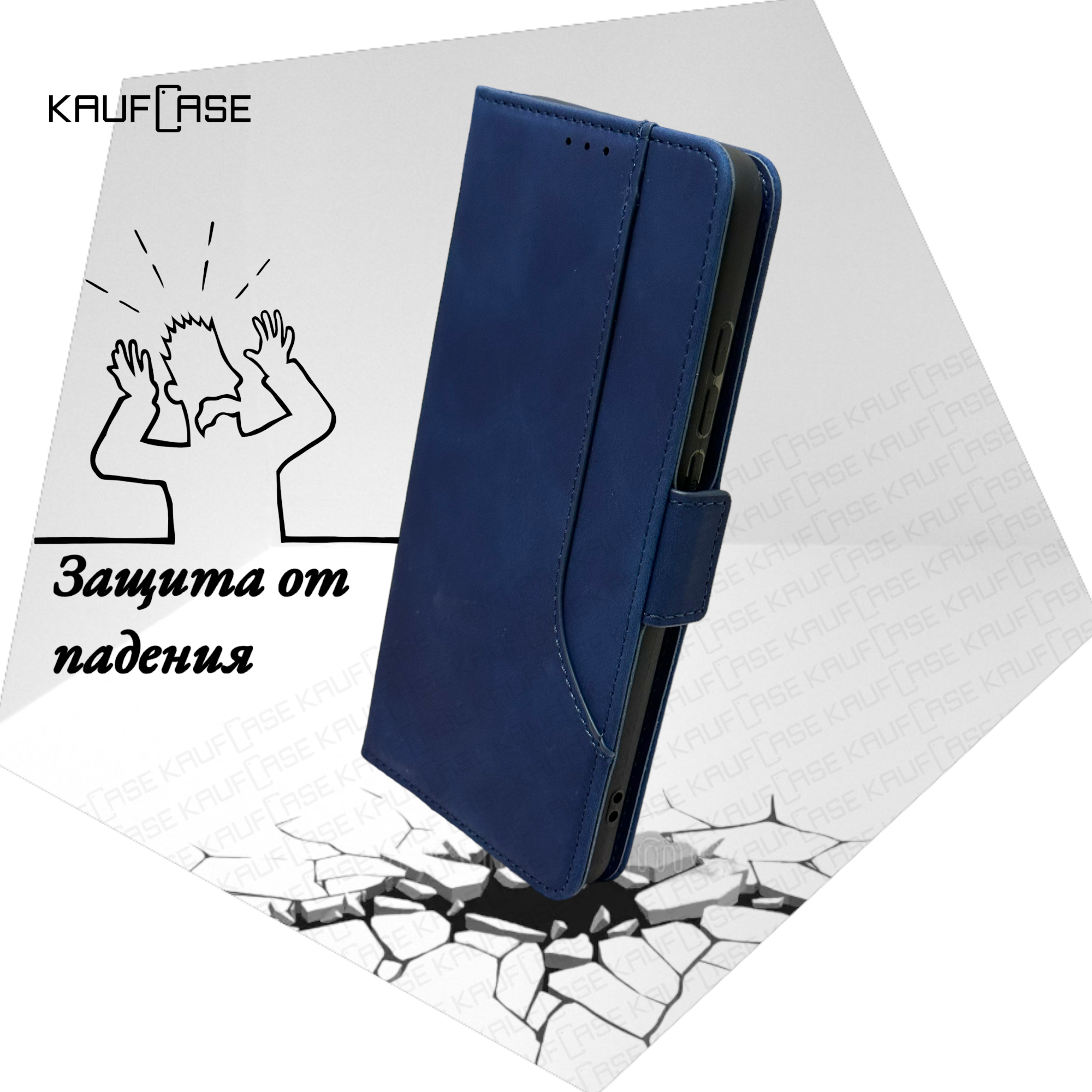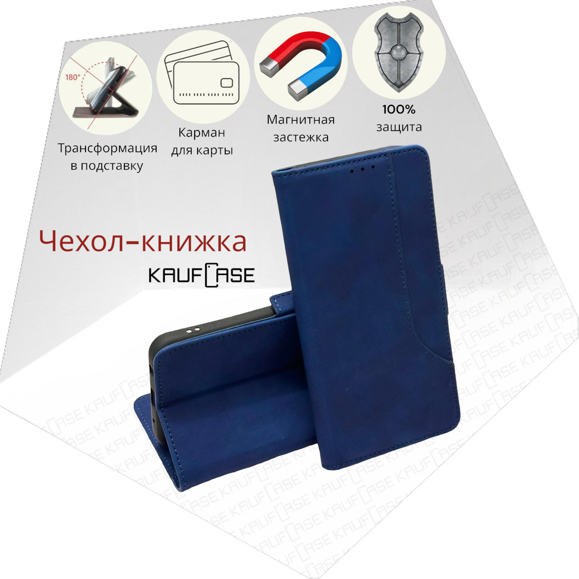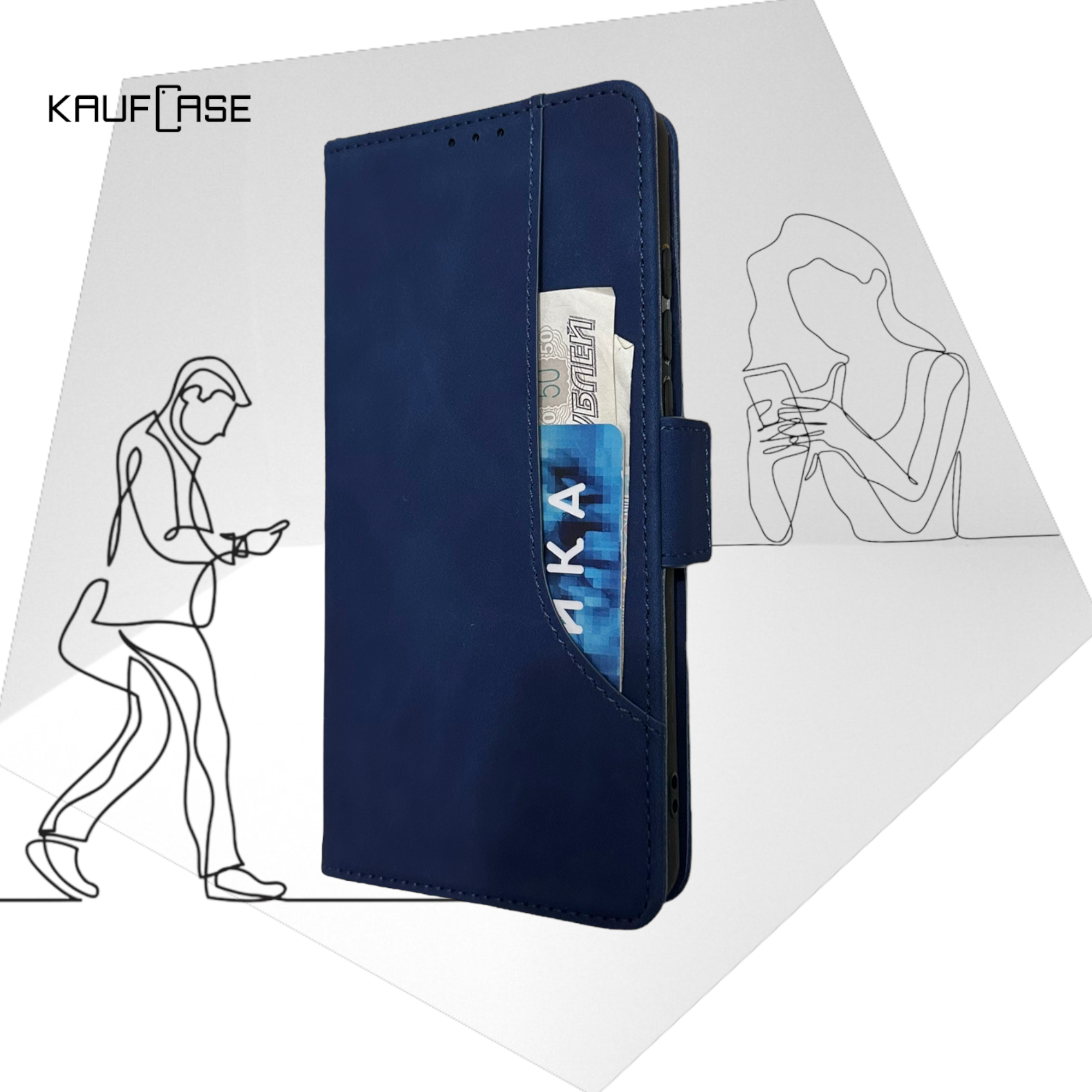 Купить Чехол книжка с карманом кошельком для вашего смартфона Xiaomi Redmi Note 13 Pro 4G/ Poco M6 Pro (6.67"), темно-синий. Матовая текстура под кожу, дополнительный карман на крышке чехла, отделения для карт и купюр