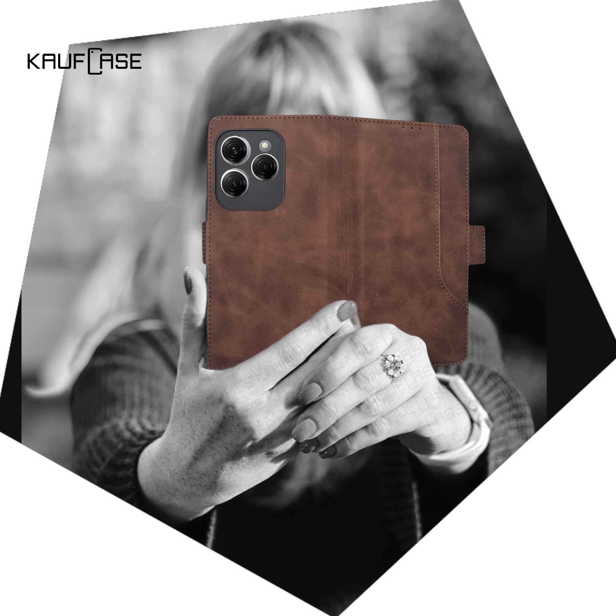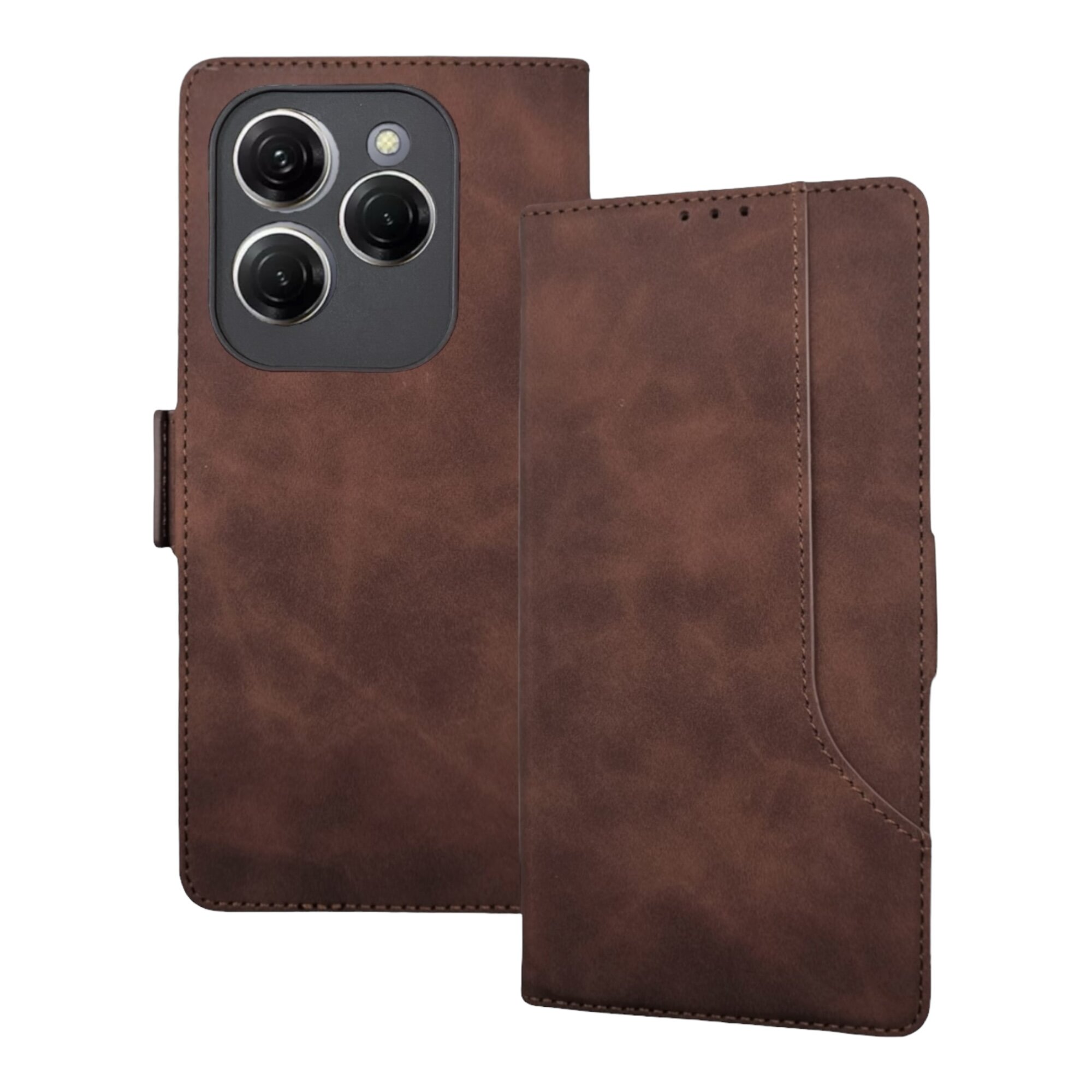 Купить Чехол книжка с карманом кошельком для вашего смартфона Tecno Spark 20 Pro (6.78"), коричневый. Матовая текстура под кожу, дополнительный карман на крышке чехла, отделения для карт и купюр