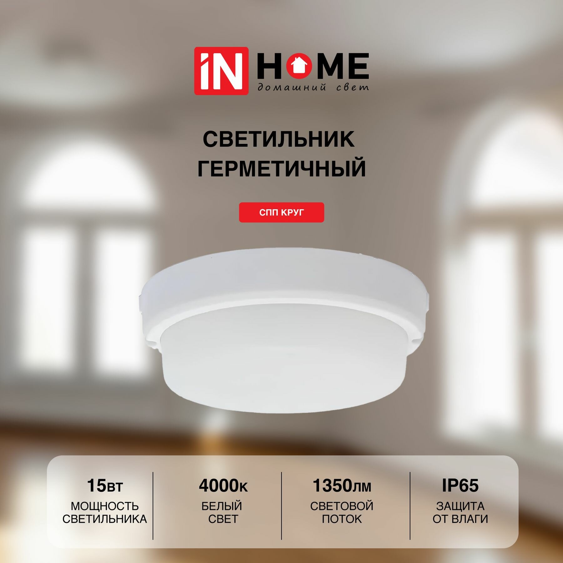 Купить Светильник светодиодный герметичный СПП 1540-КРУГ 15Вт 4000К 1350лм IP65 140мм IN HOME 4690612044880