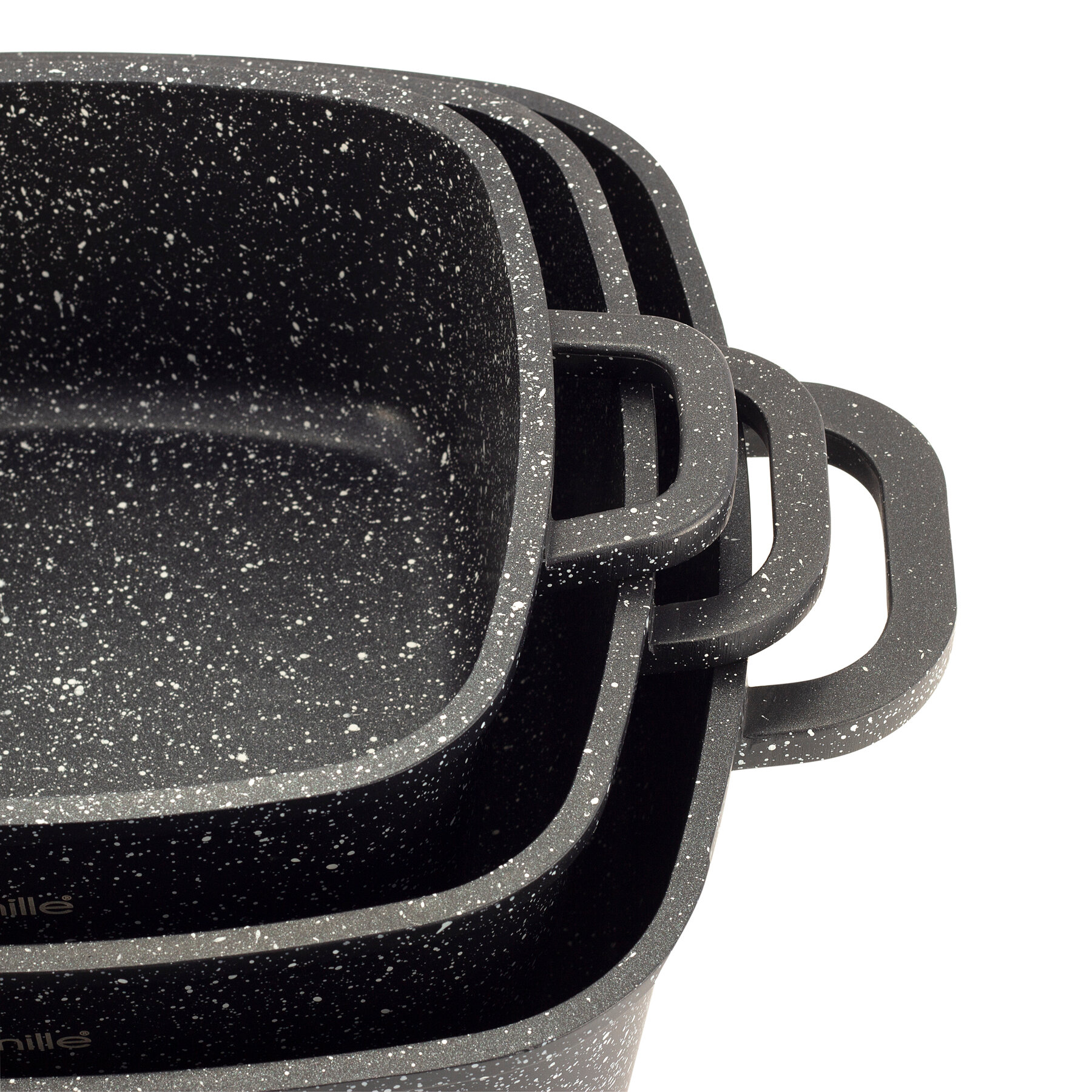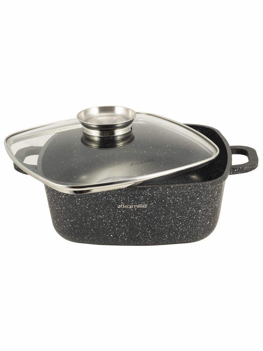 Набор посуды 7 предметов с прихватками Kamille KM-4435 (кастрюли квадратные 20см, 24см, 28см, прихватки 2шт) (черный)