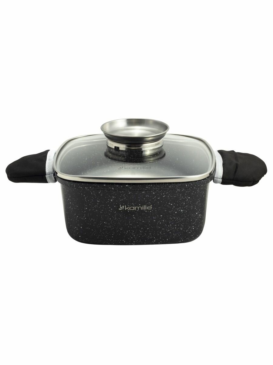 Набор посуды 5 предметов с прихватками Kamille KM-4434 (кастрюли квадратные 20см, 24см, прихватки 2шт) (черный)