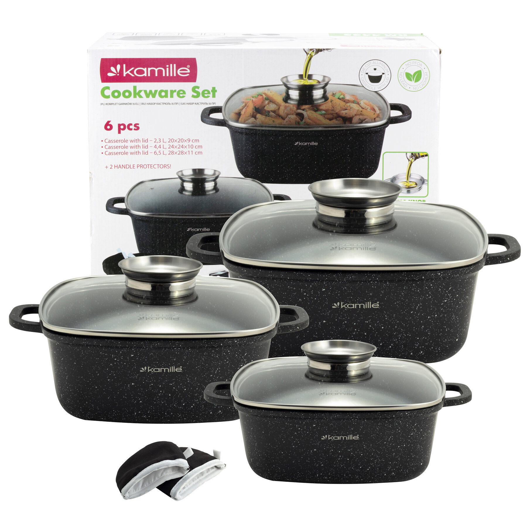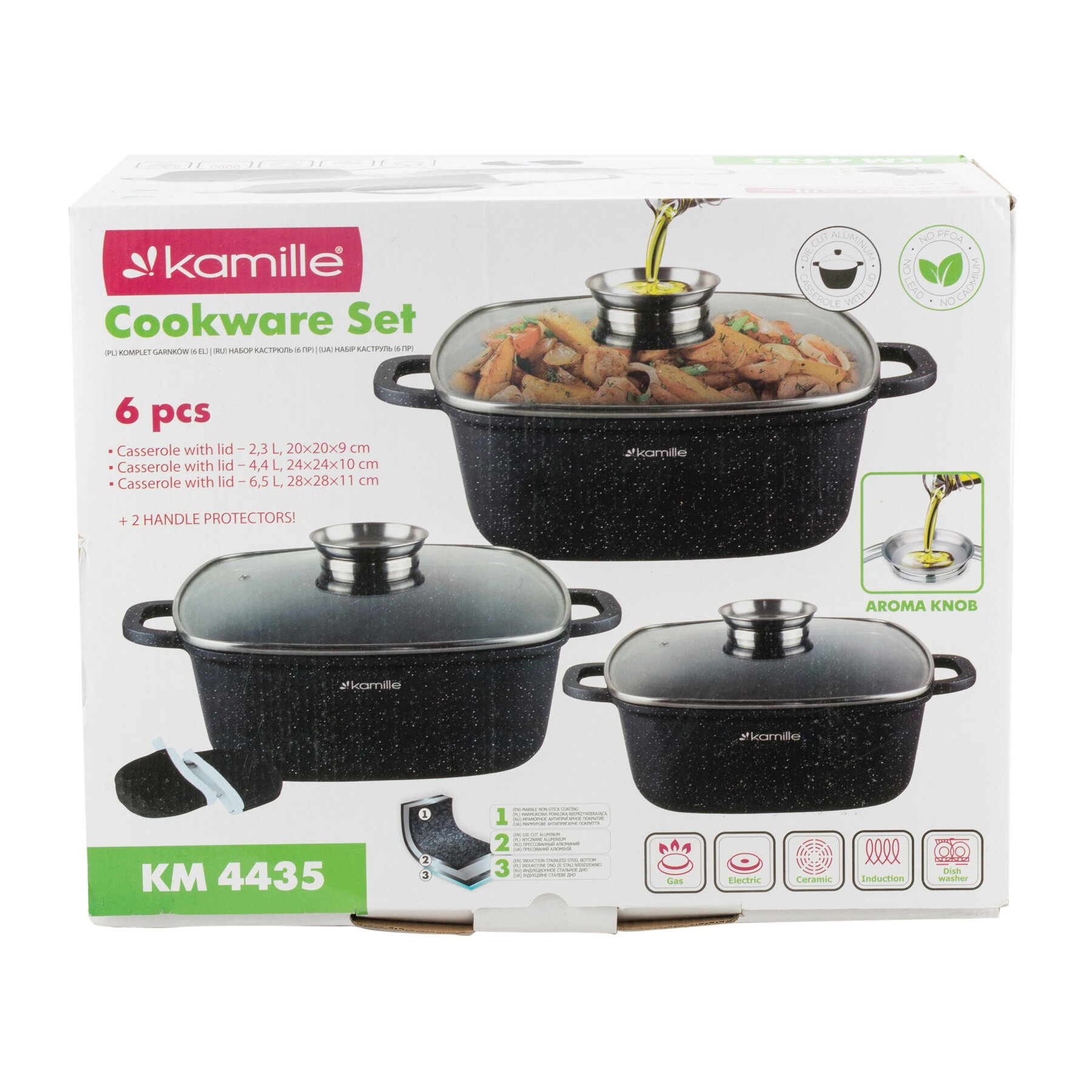 Набор посуды из литого алюминия 7 предметов Kamille KM-4430 с прихватками (черный)