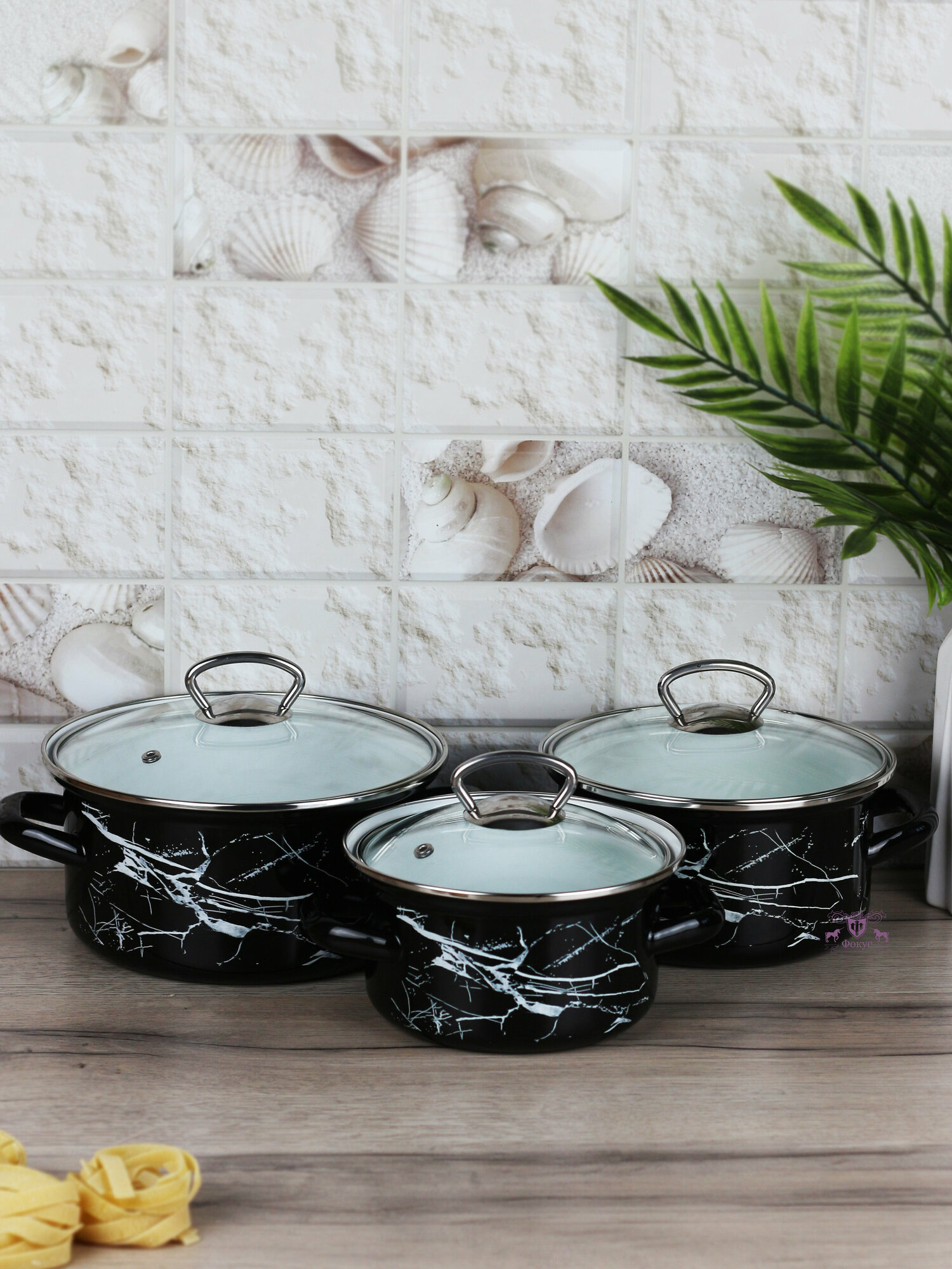 Купить Набор 3 пр. Черный мрамор-1-Элит (черная) (1,9л, 2,5л, 3,7л)