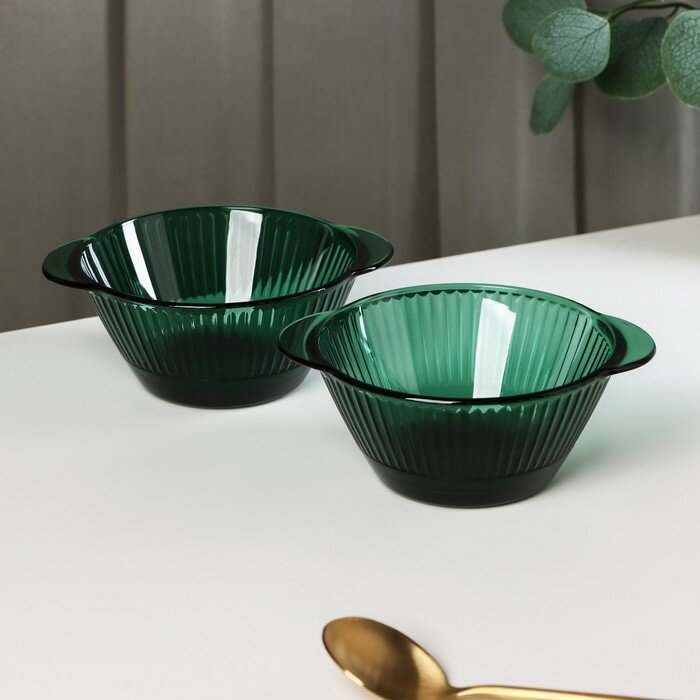 Набор стеклянных мисок «Верде», 450 мл, 16,5×6,5 см, 2 шт, цвет зелёный интересное: