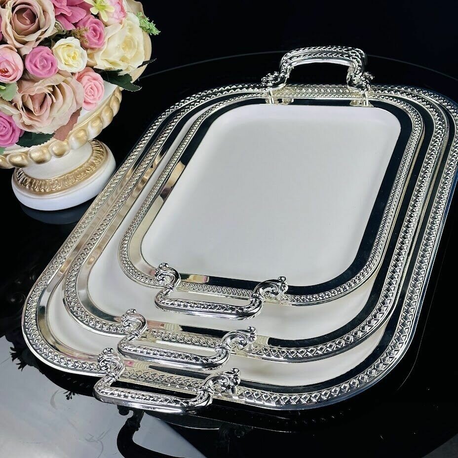 Купить Набор 3 штуки Поднос прямоугольный Lenardi 33/40.5/46.5см, нержавеющая сталь