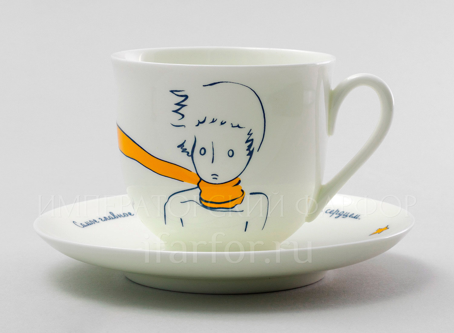 Подарочный набор кофейная пара из костяного фарфора Императорский фарфоровый завод ИФЗ ф.Ландыш "Портрет маленького принца" 180 мл. интересное: