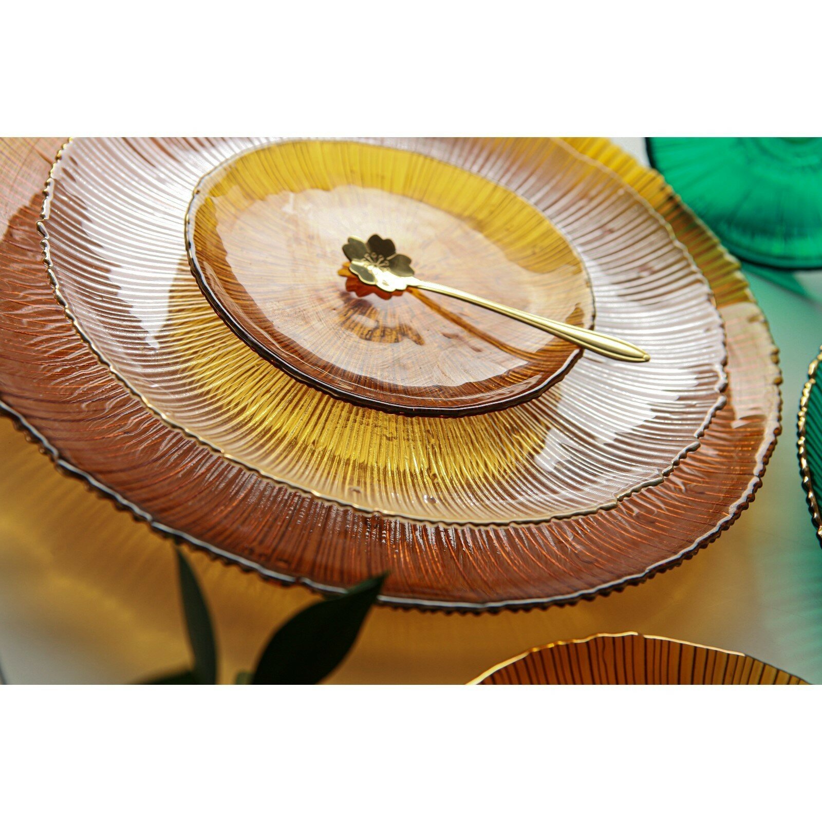 Тарелка стеклянная «Фейерверк», d=20,5 см, цвет изумрудный