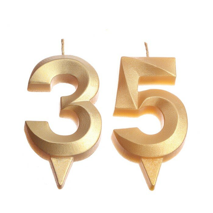 Свеча в торт юбилейная "Грань" (набор 2 в 1), цифра 35, цифра 53, золотой металлик, 6,5 см 9305490