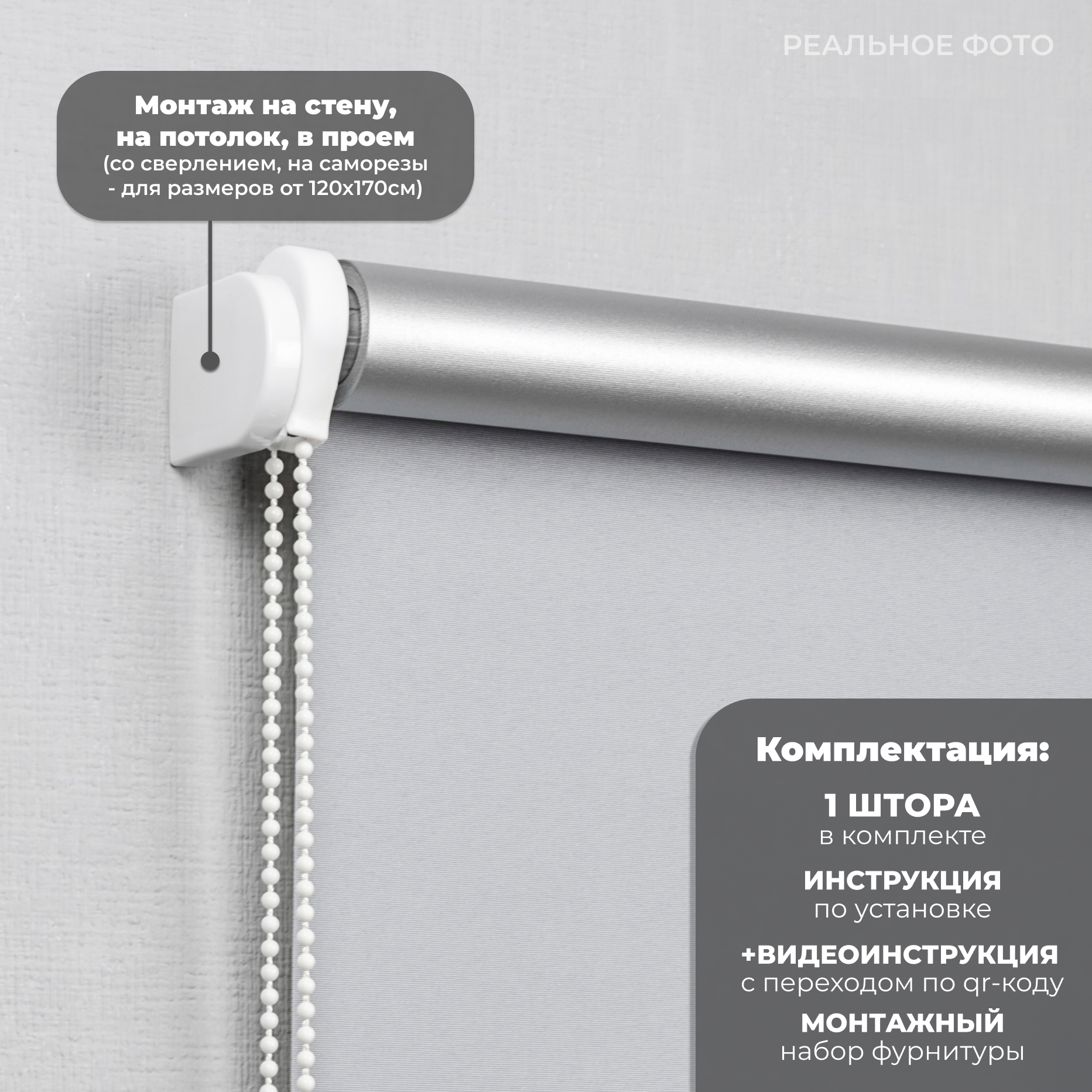 | Дополнительная информация | На обратной стороне ткани светоотражающий слой серебристого цвета. Установка только со сверлением. |