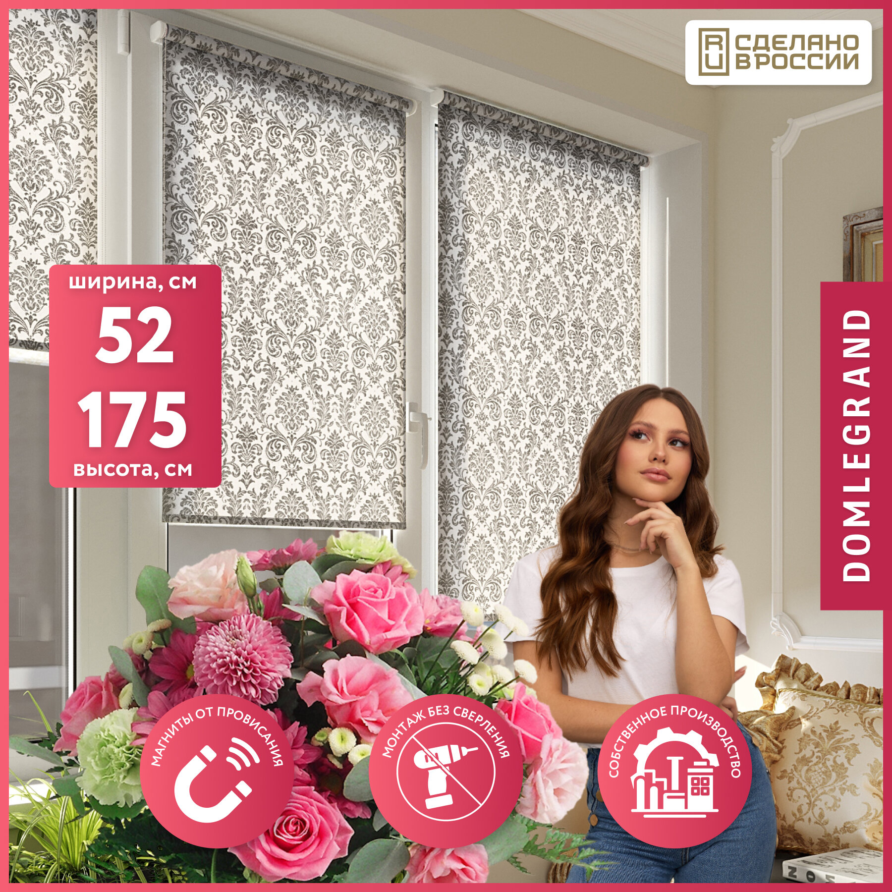 Рулонная штора DOMLEGRAND бриз 52 на 175 серый / Рулонные шторы на окна не блэкаут / Жалюзи на окна / Шторы не блэкаут