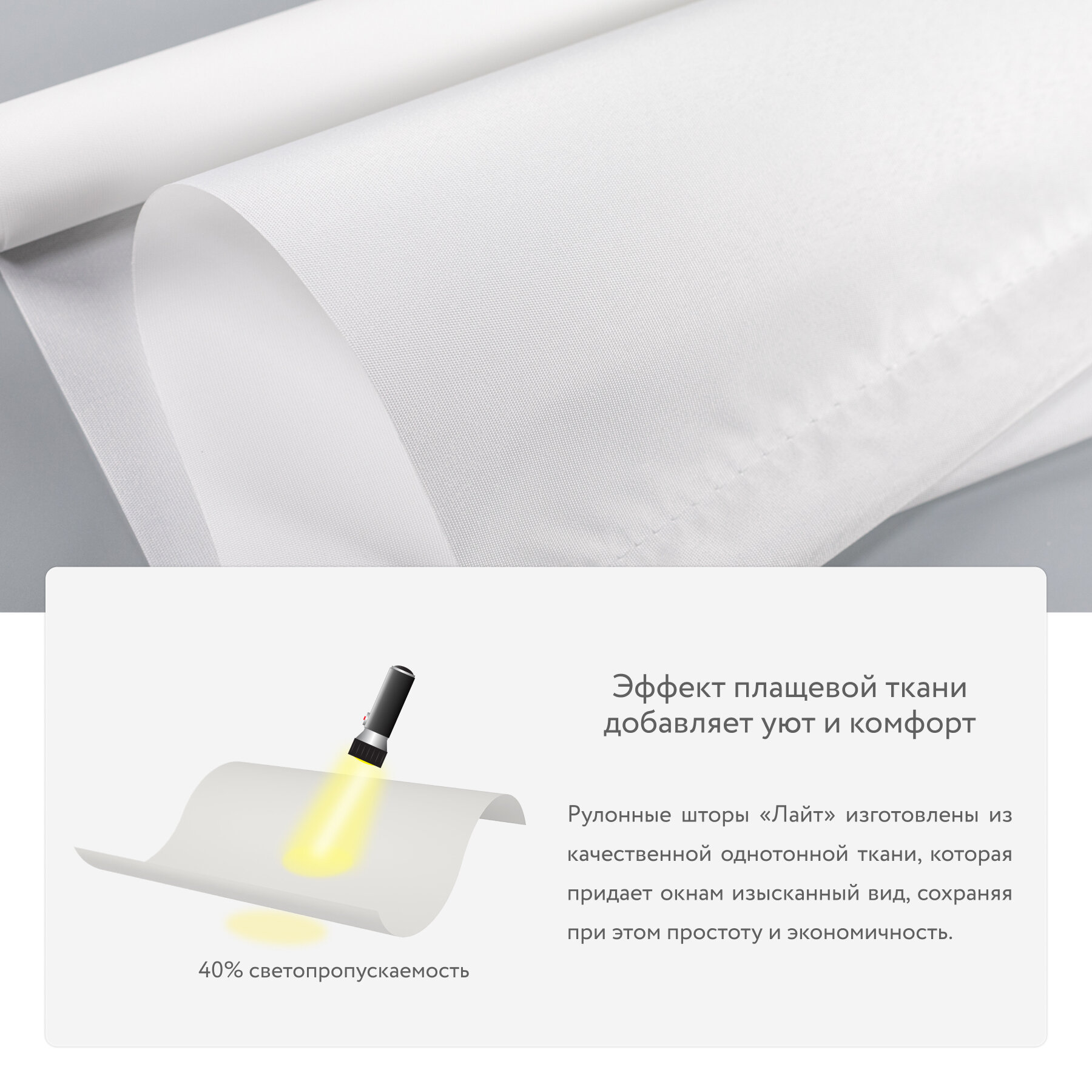 Рулонная штора "Лайт" белый / Рулонные шторы на окна не блэкаут / Жалюзи на окна / Шторы не блэкаут