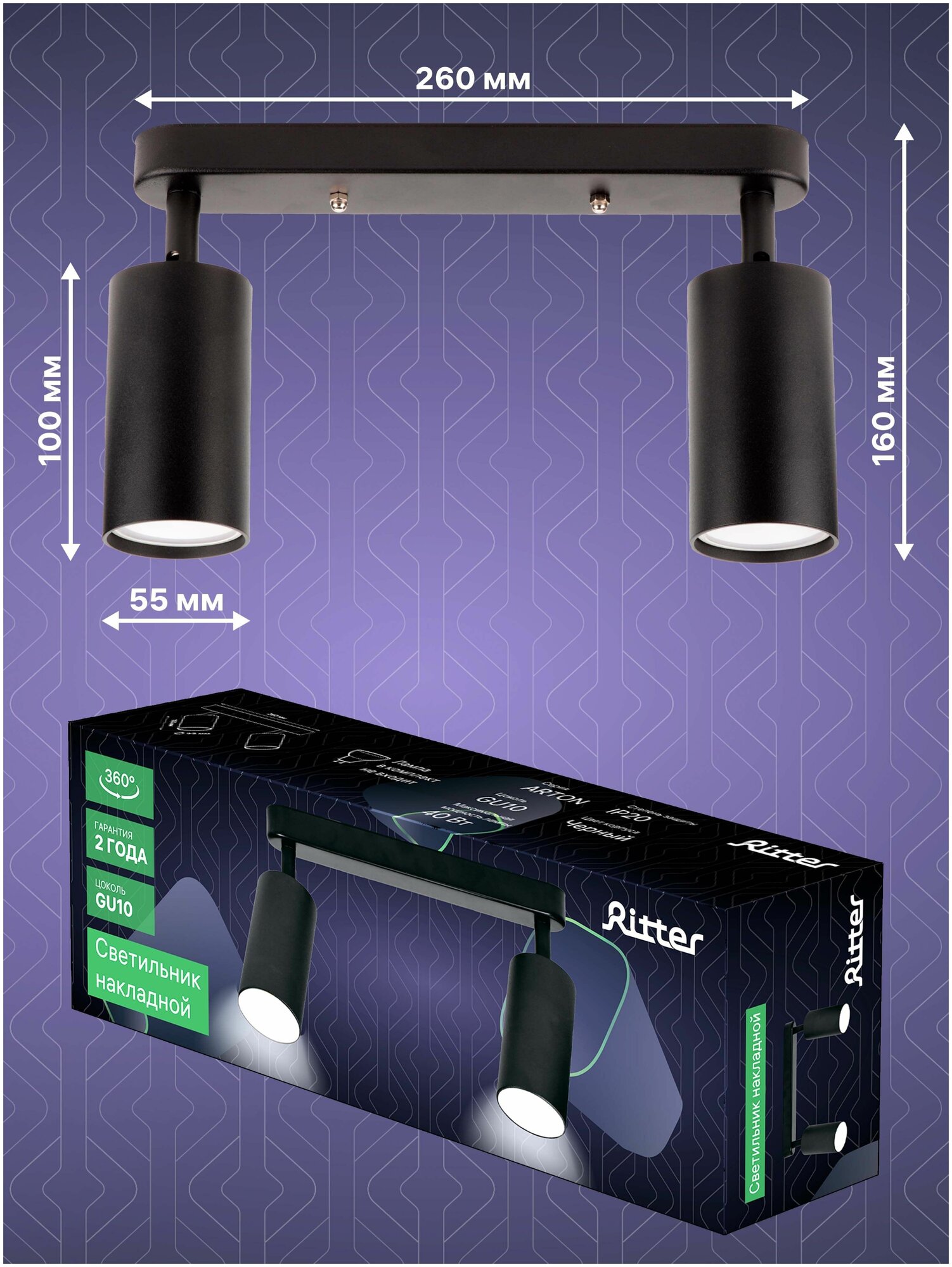 СохранитьСпот поворотный точечный накладной Ritter Arton 59934 0 2хGU10 цвет черный интересное: