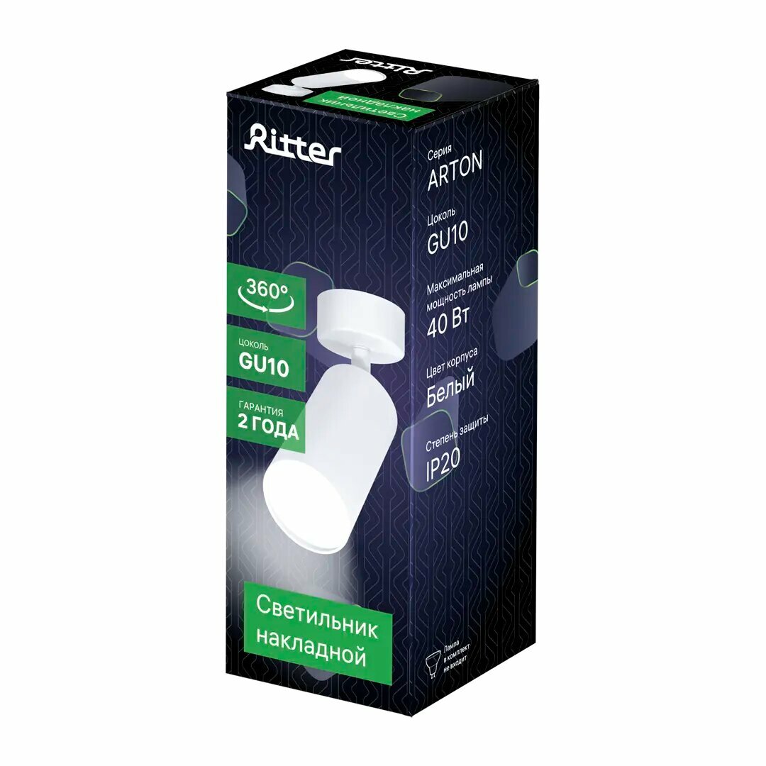 Светильник накладной Arton, поворотный, цилиндр, 55х100мм, GU10, алюминий, белый, настенно-потолочный светильник для гостиной, кухни, Ritter, 59964 7