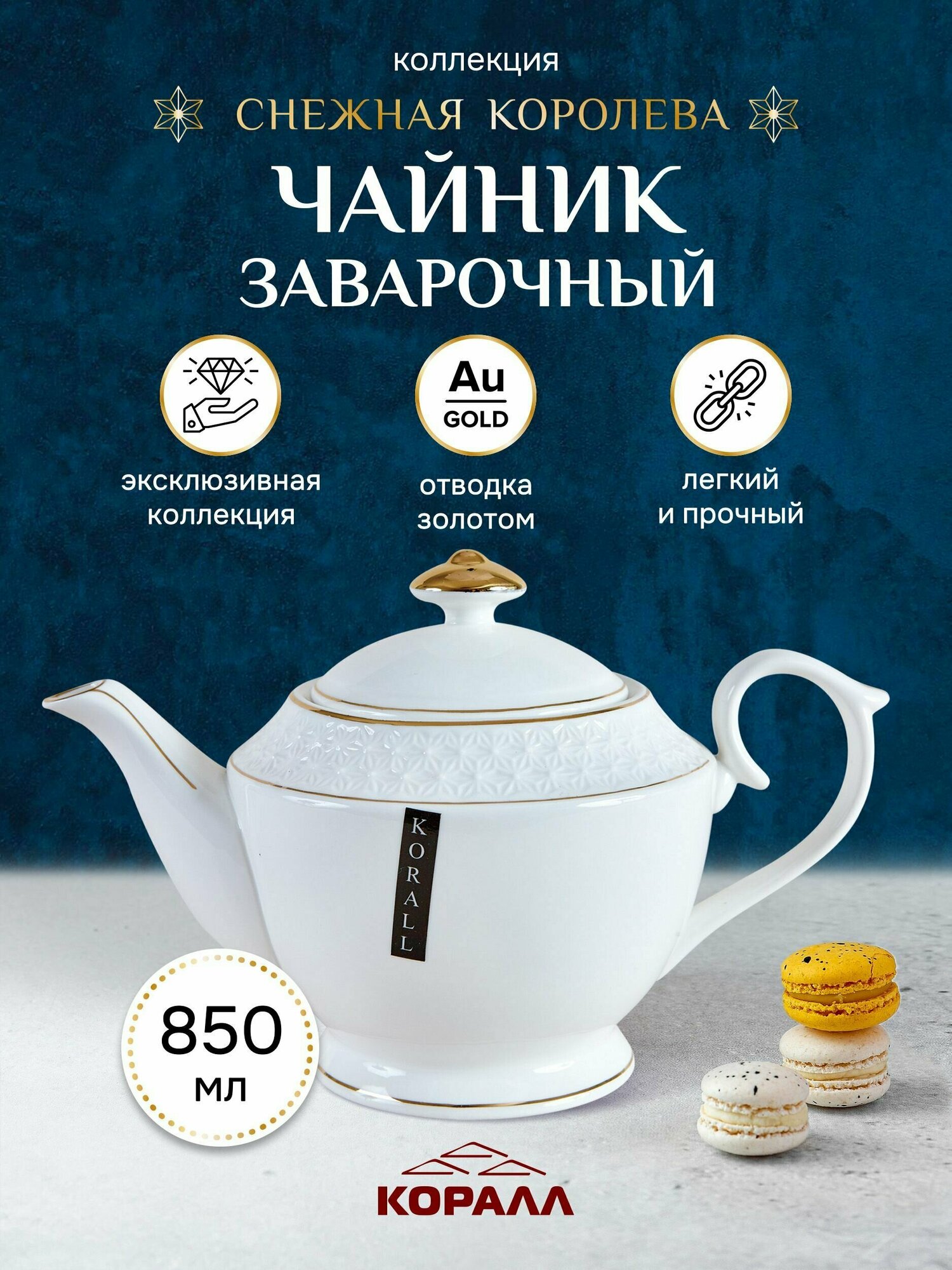 Чайник заварочный белый подарочный "Снежная королева" 850мл керамика