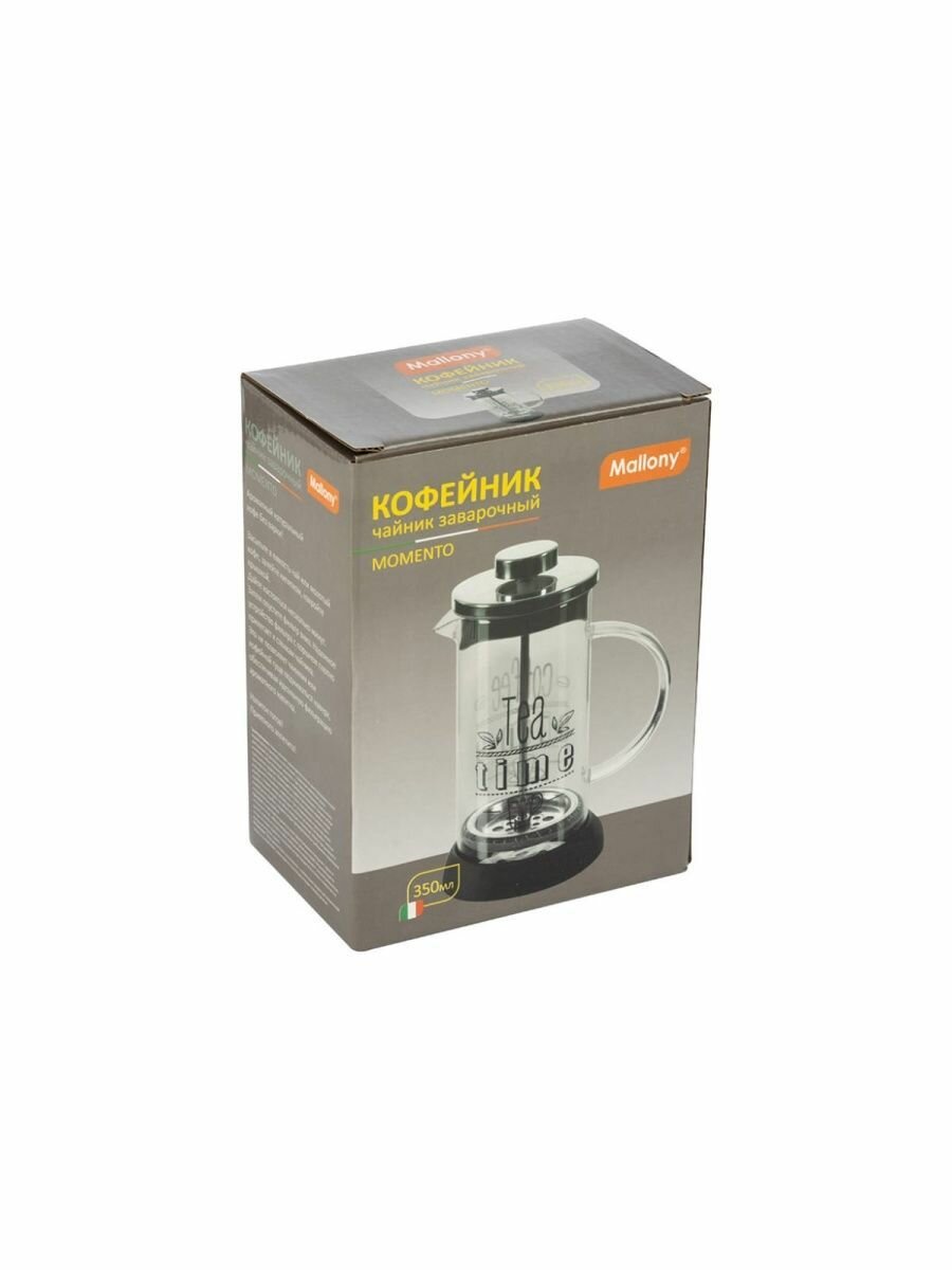 Купить Mallony Чайник/кофейник кофе-пресс MOMENTO 350 мл из боросиликат стекла с надписью на корпусе 007530