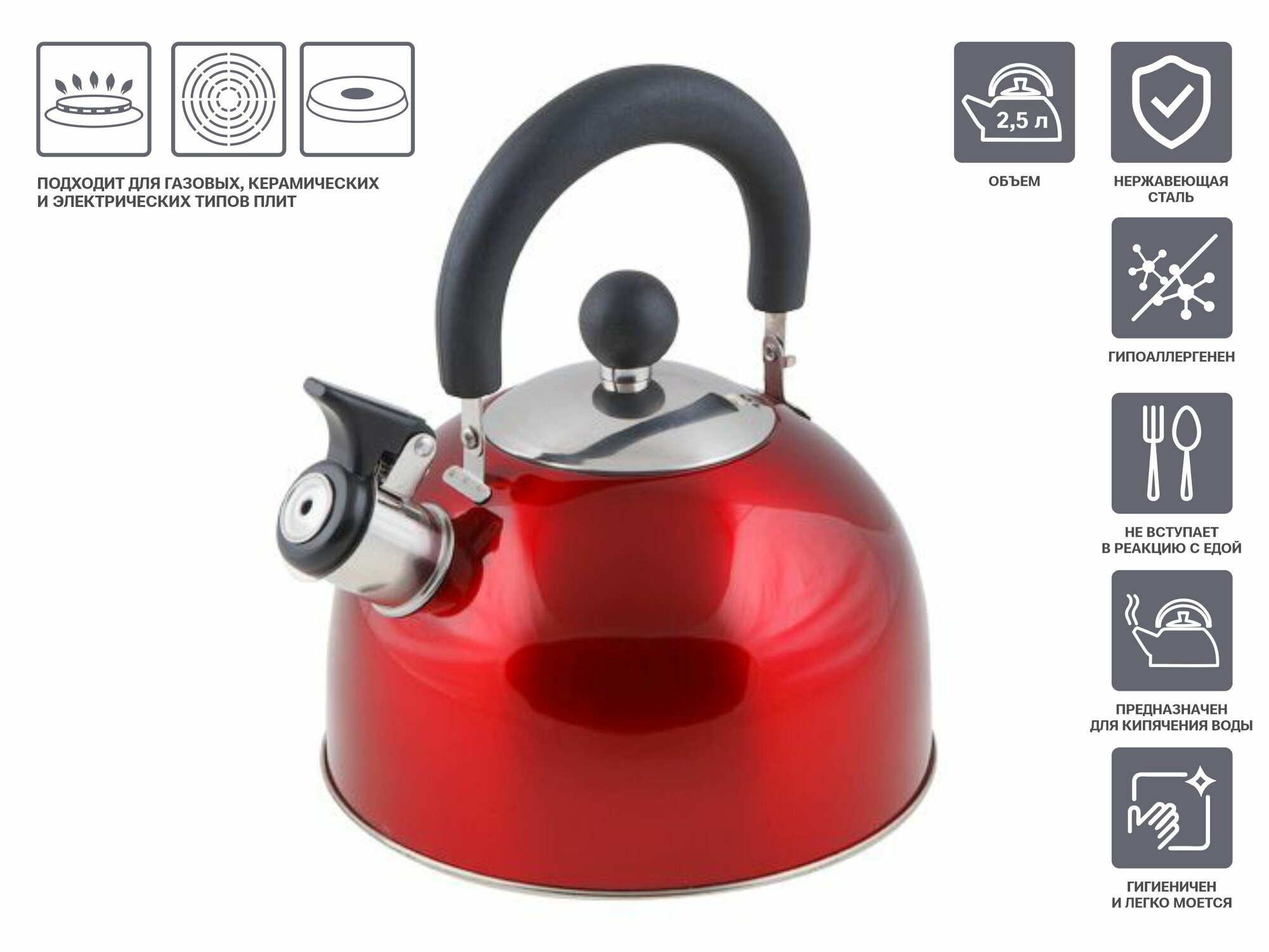 СохранитьЧайник со свистком PERFECTO LINEA Holiday 2,5 л красный металлик (52-121515) интересное: