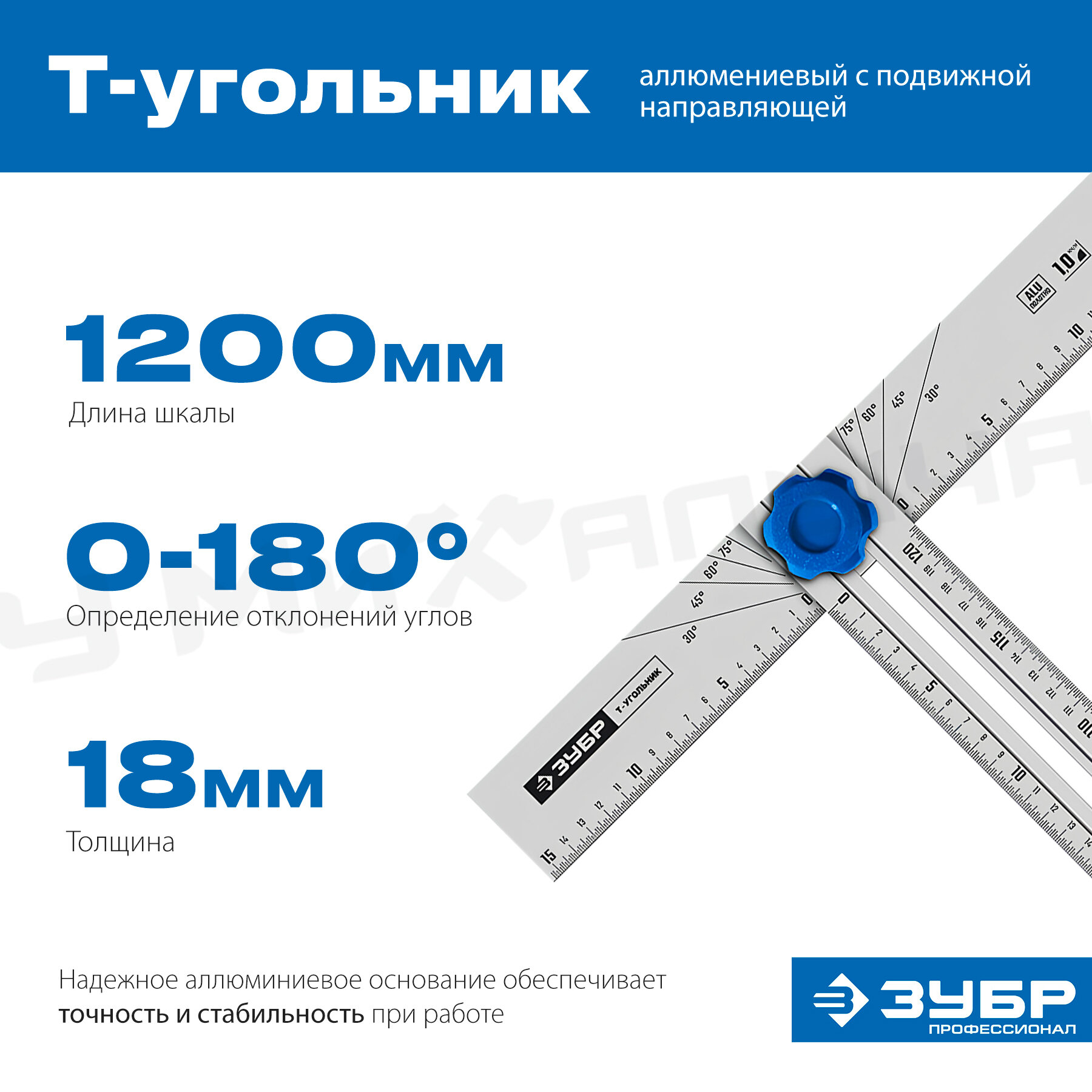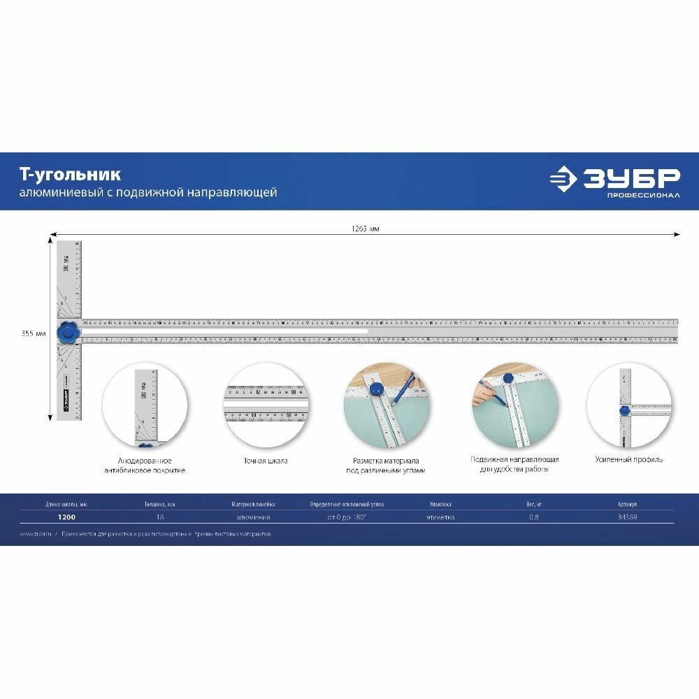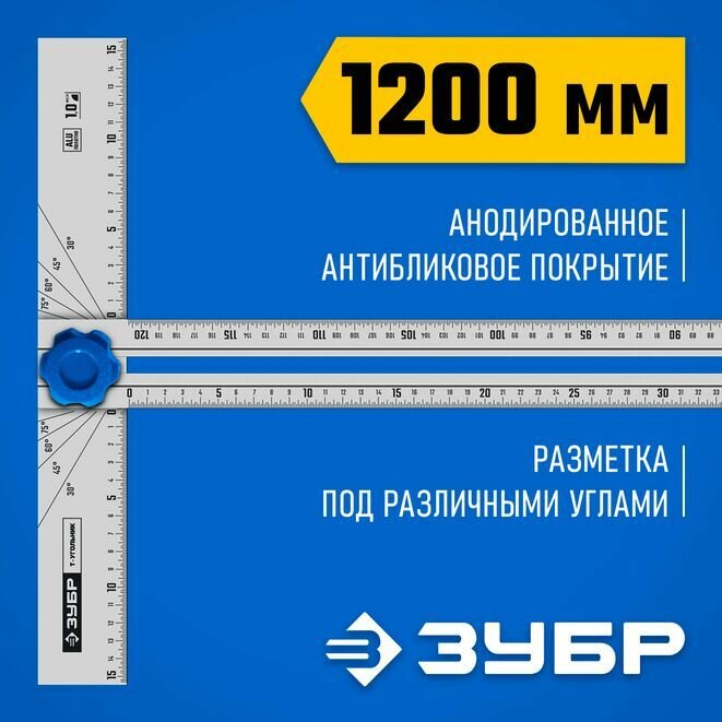 Купить ЗУБР Т-угольник алюминиевый с подвижной направляющей, Профессионал (34389)