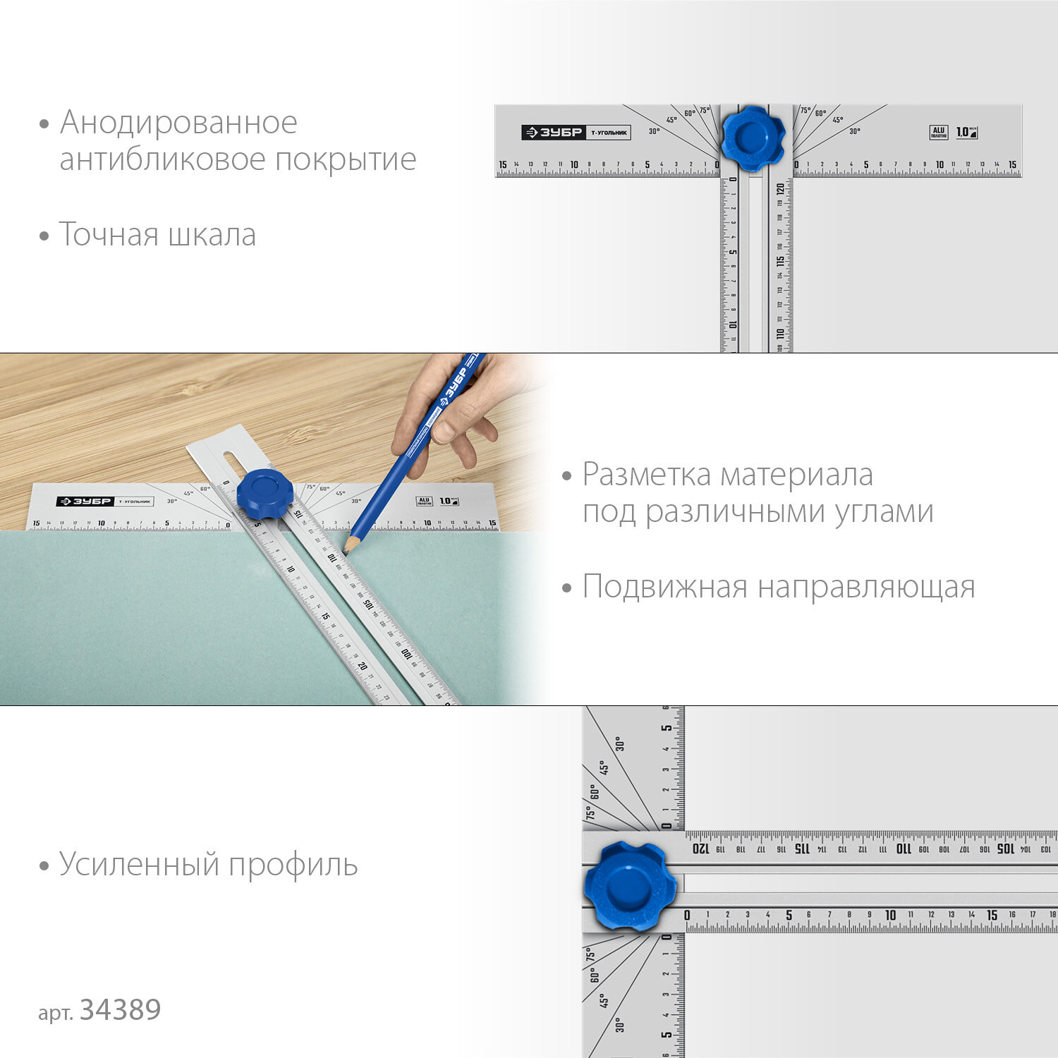 СохранитьЗУБР Т-угольник алюминиевый с подвижной направляющей, Профессионал (34389) интересное: