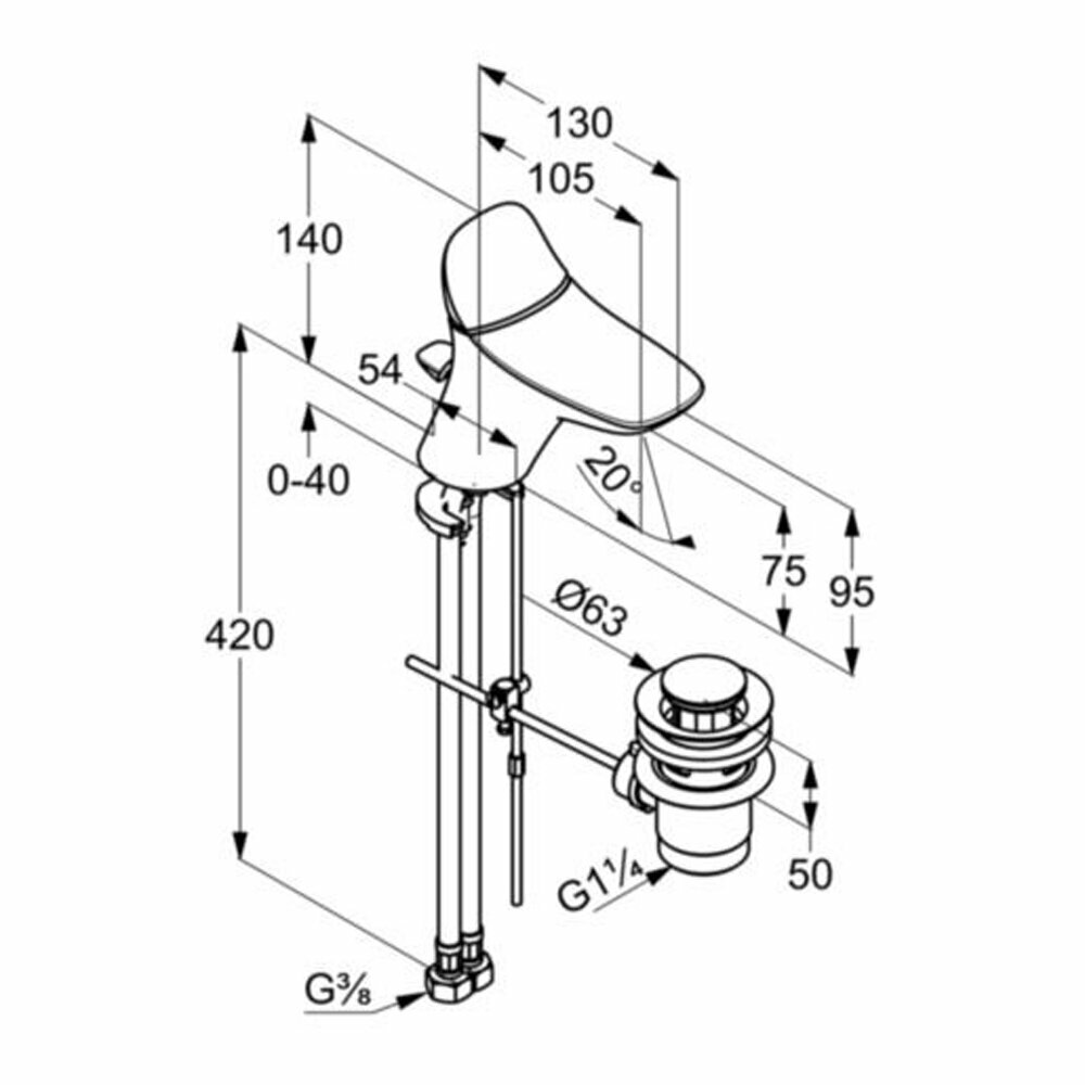 Смеситель для раковины Kludi Ambienta S-size, донный клапан, хром 530290575