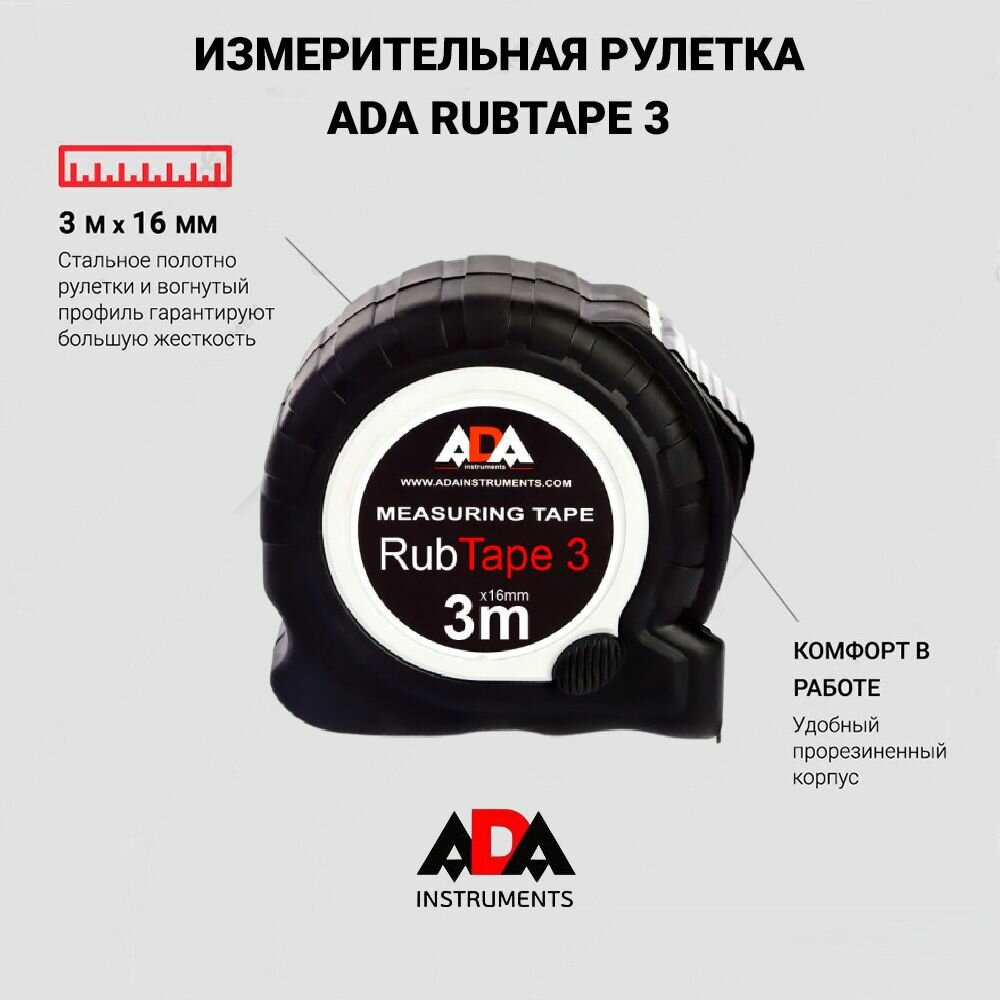 ADA Рулетка ADA RubTape 3 (сталь, с двумя стопами, 3 м) А00155 интересное: