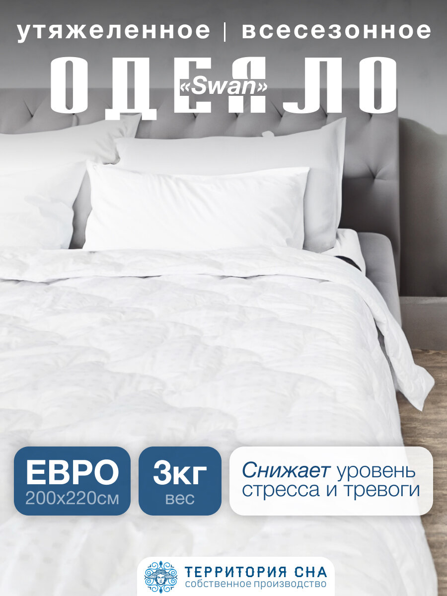Территория сна Одеяло Евро 200x200 см утяжеленное всесезонное с наполнителем Лебяжий пух, Искусственный пух