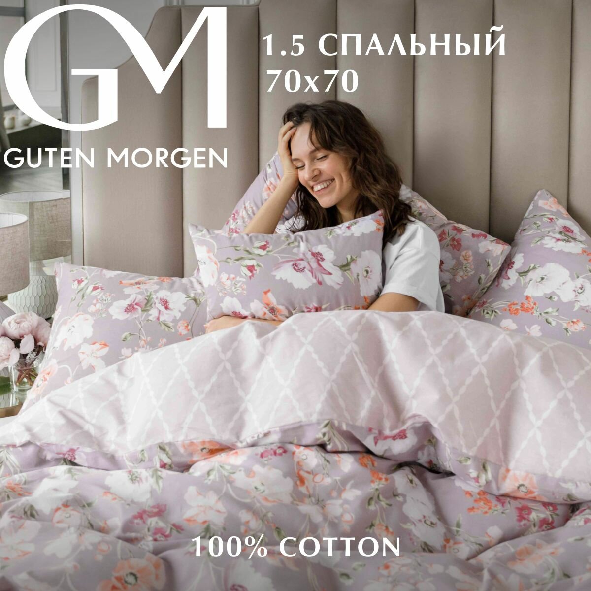 Комплект постельного белья, Guten Morgen, Поплин, 1.5 спальный с нав. 70х70 см
