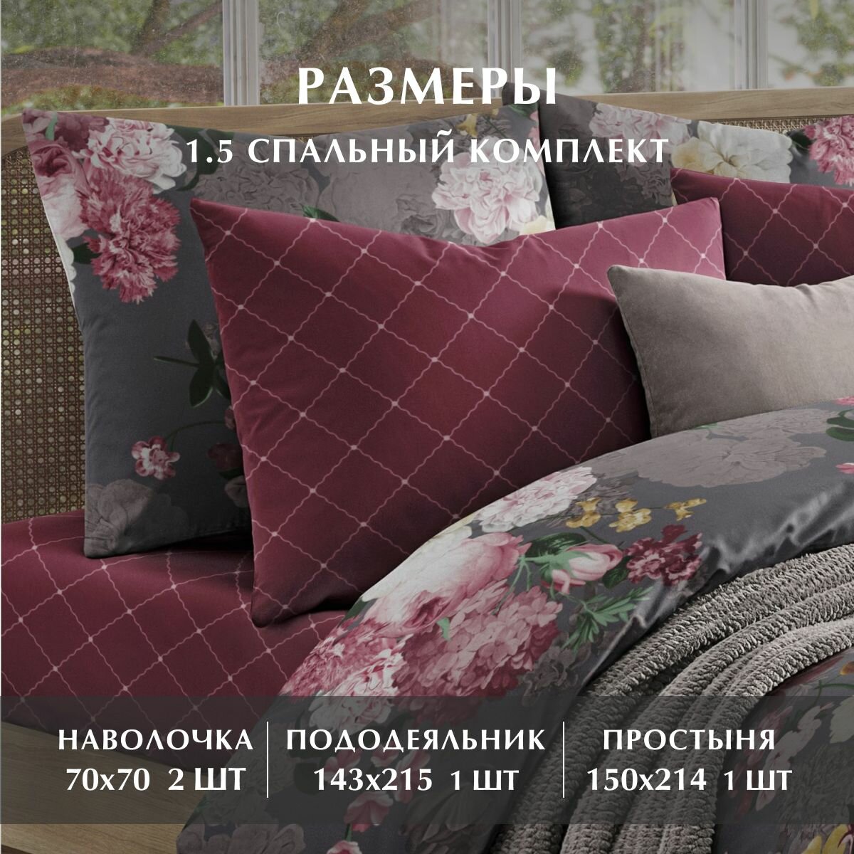 Постельное белье, Поплин, 1.5 спальное, 2 наволочки 70х70, GM, Цветочный вальс 100% хлопок на Новый год
