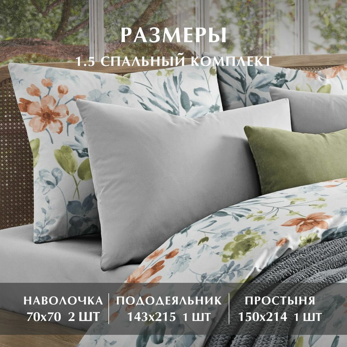 Постельное белье, Поплин, 1.5 спальное, 2 наволочки 70х70, GM, Цветочный вальс 100% хлопок