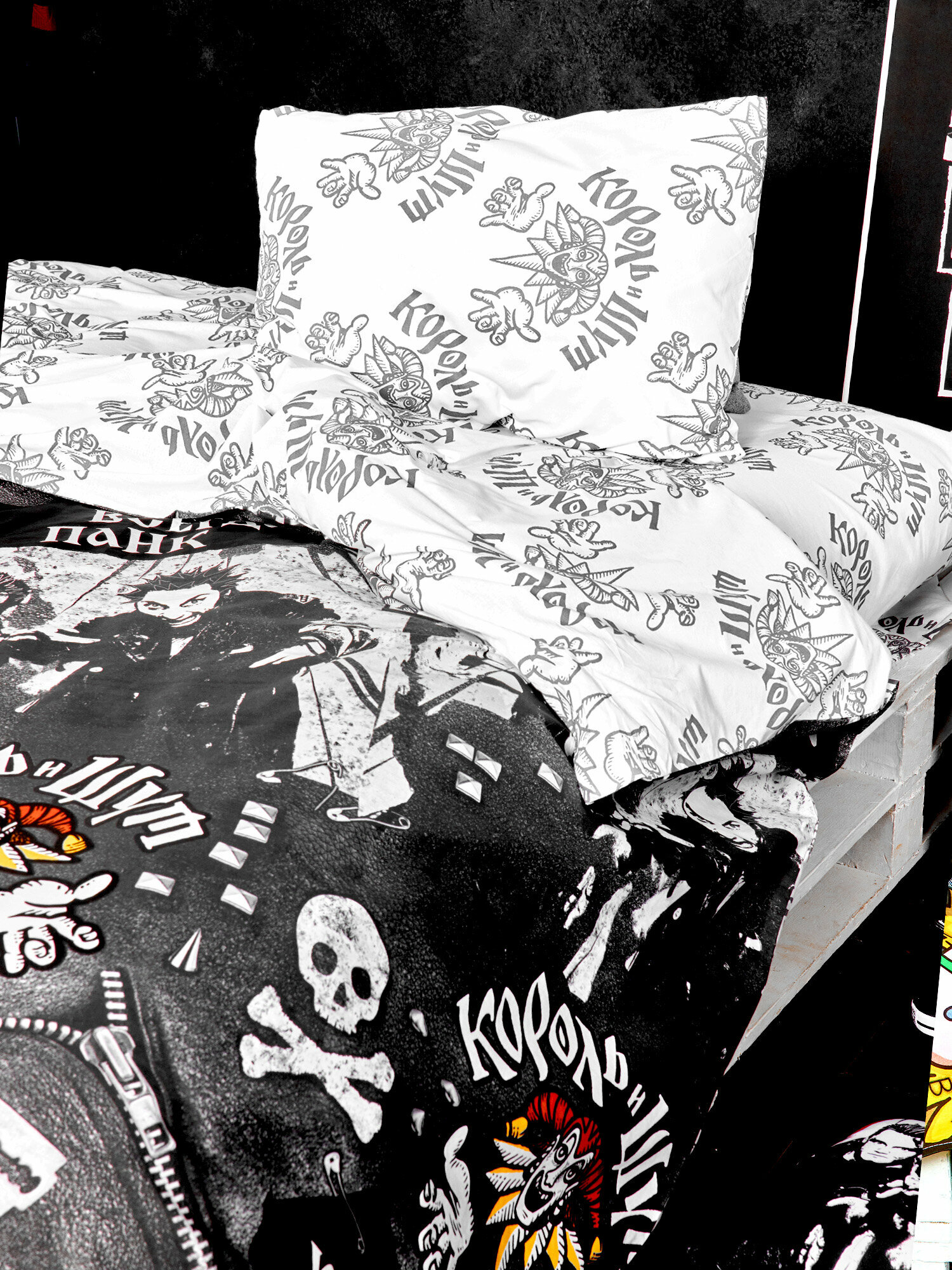 Комплект постельного белья 1,5 спальный Непоседа, перкаль хлопок, 1 наволочка 50х70, Король и Шут / Панки ХОЙ рис. 16775-1/16776-1