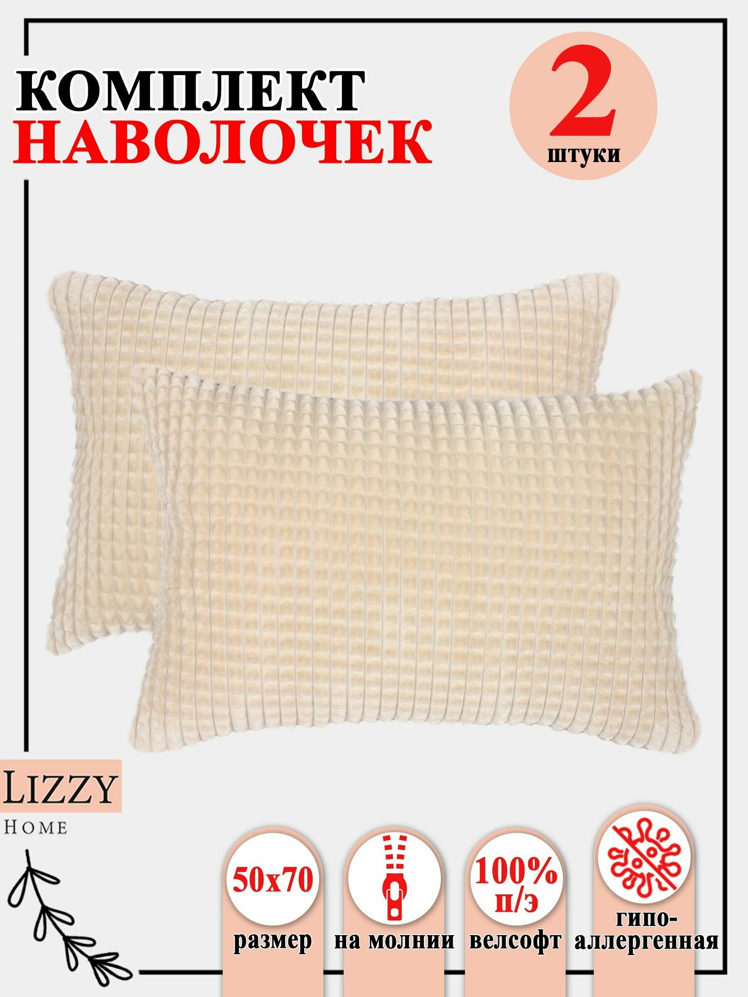 Комплект наволочек 2 штуки Lizzy Home из велсофта размер 50*70 см цвет крем-брюле интересное: