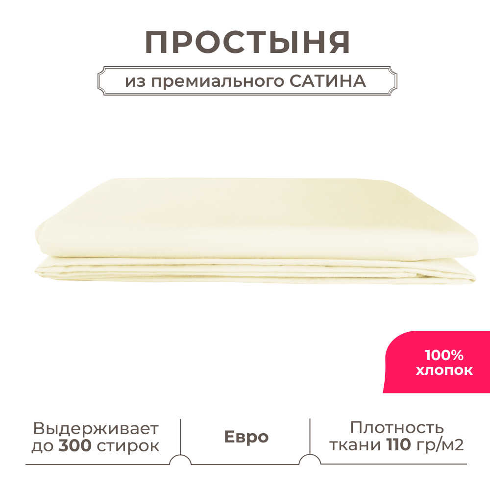 Купить Евро простынь Lisleep 230х250, классическая, сатин (100% хлопок), шампань