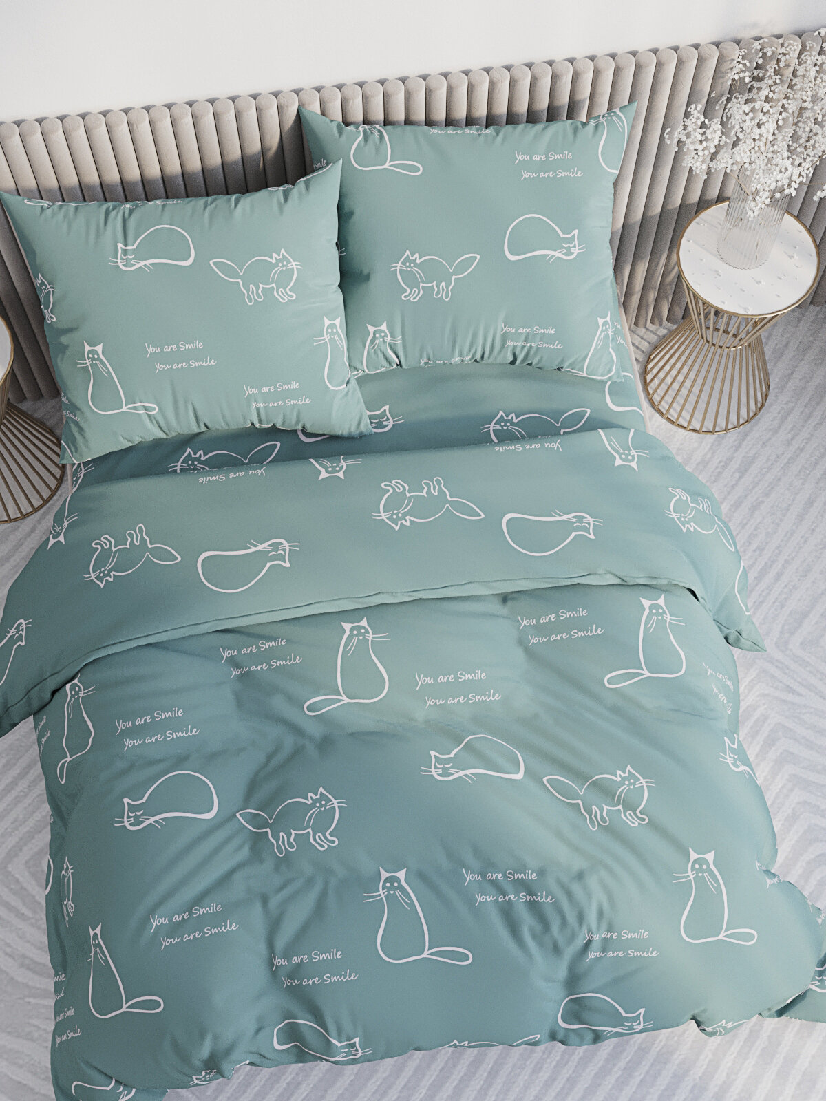 Простынь классическая сатин Milky Garden "Котики (мята)" 240х215 см