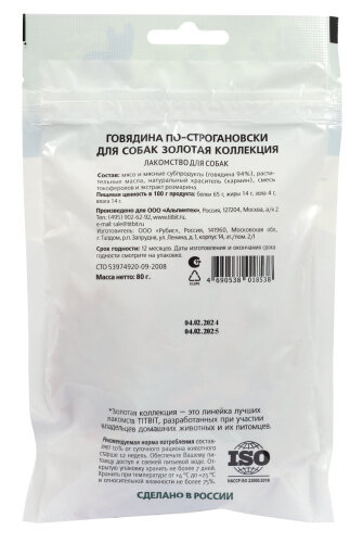 Titbit Лакомство для собак Золотая коллекция Говядина по-строгановски, 80 г