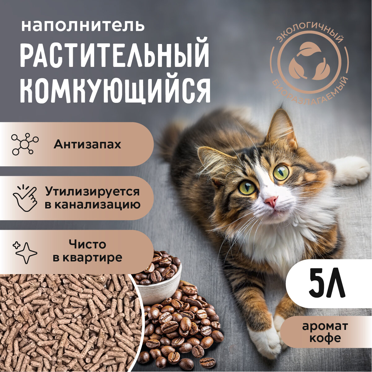 СохранитьНаполнитель для кошачьего туалета растительный комкующийся Ok-Lock с ароматом кофе, 2,15 кг 5 л интересное: