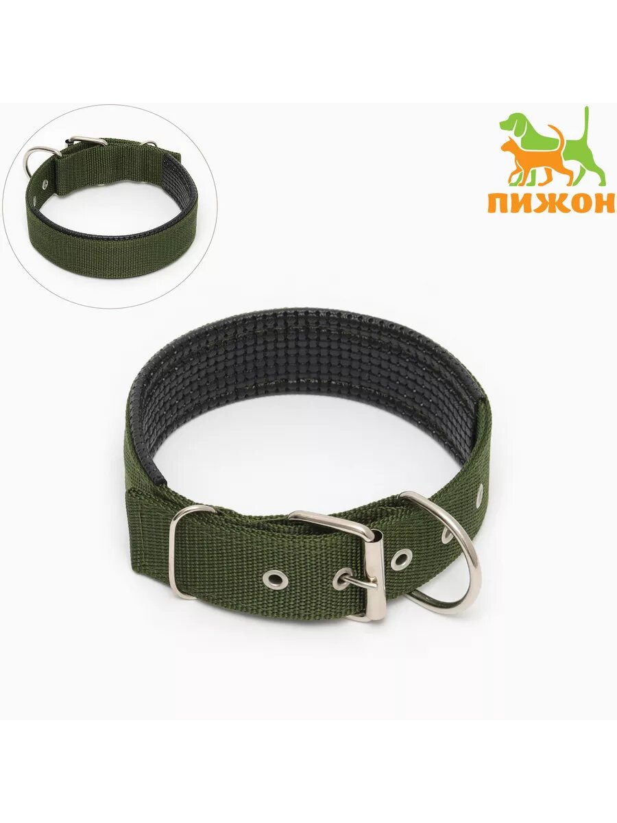 Пижон Ошейник "Комфорт" комбинированный, 60 х 4 см, ОШ 44-55 см, темно-зелёный