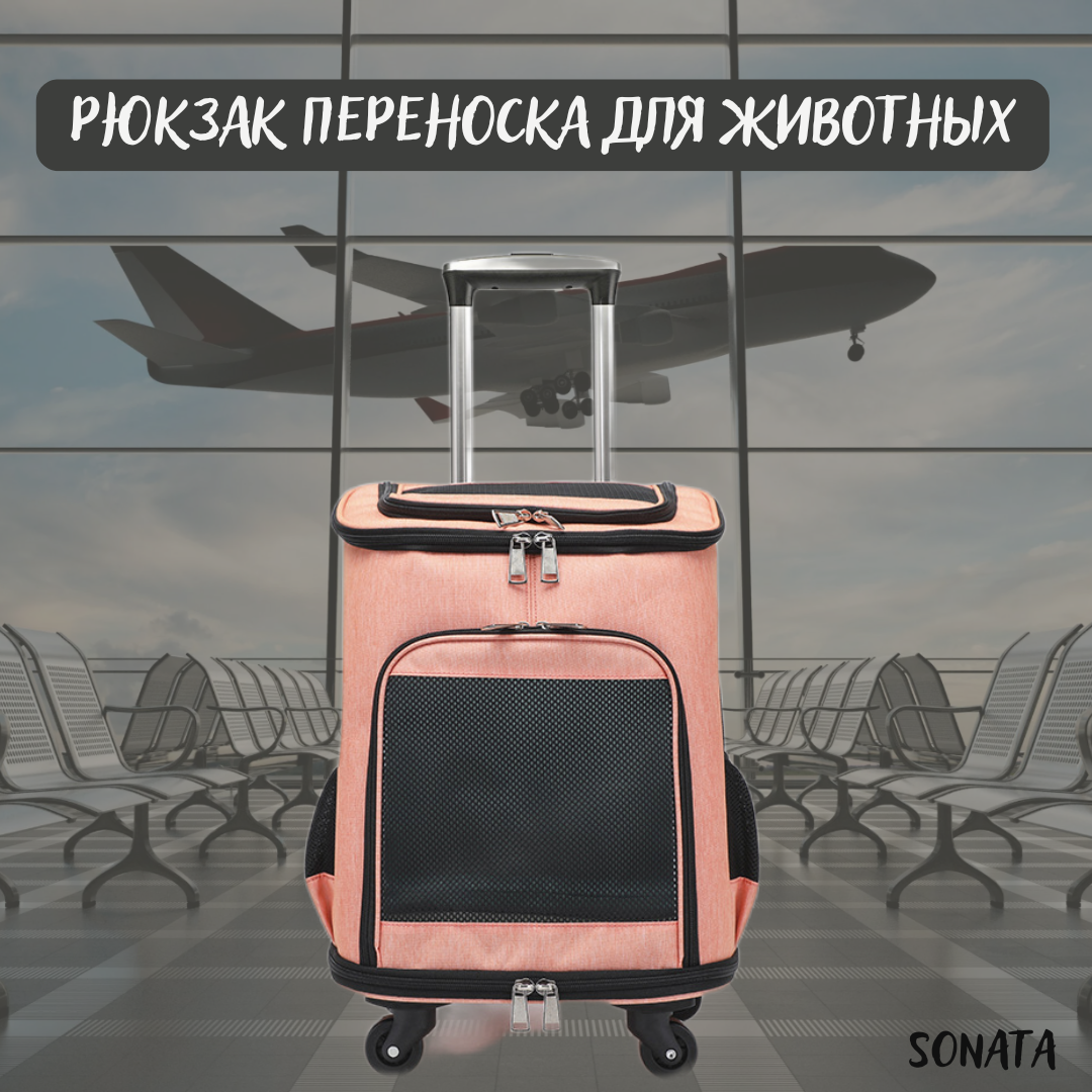 Сумка рюкзак переноска для животных на колесах, коралловая интересное: