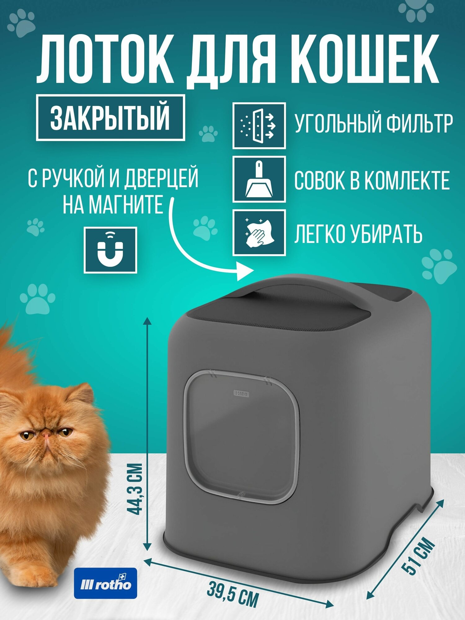 Купить Био-туалет для кошек Rotho Biala с угольным фильтром, дверцей и ручкой, антрацит