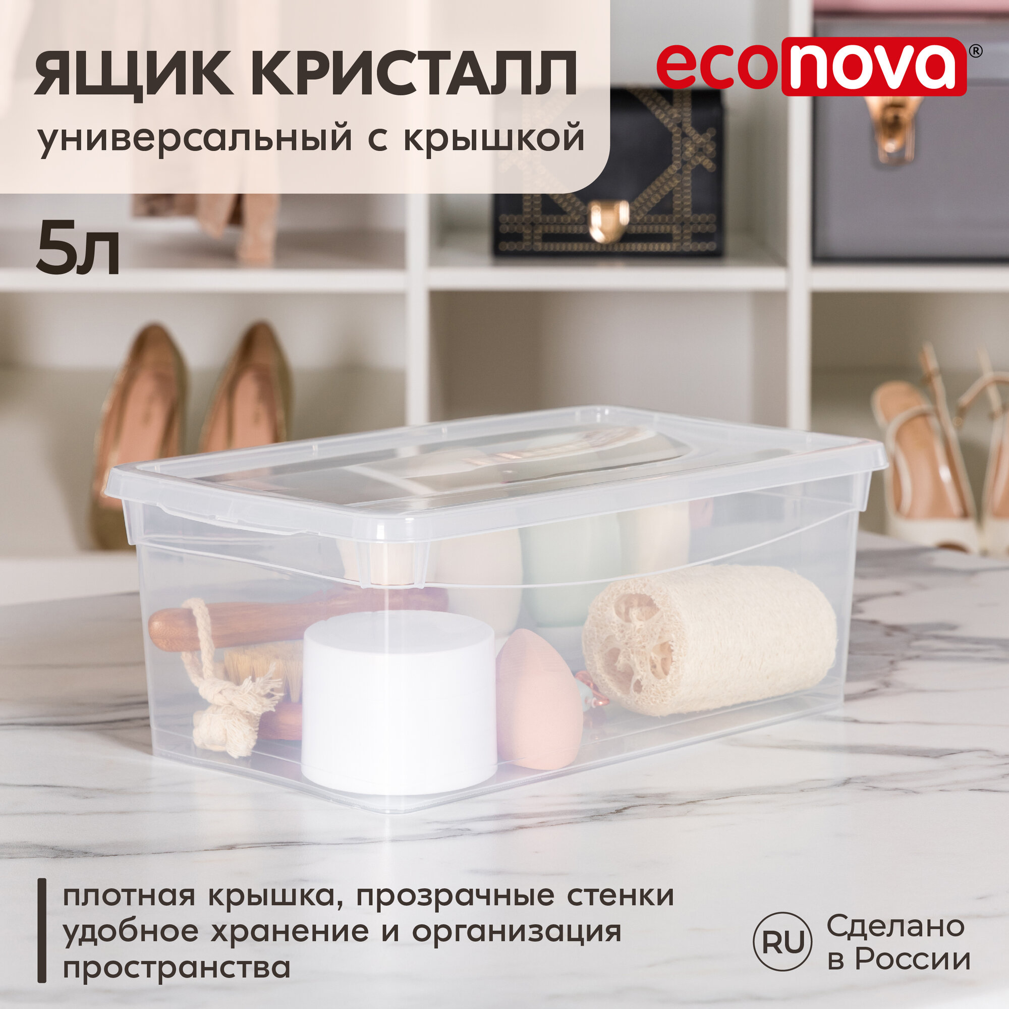 Контейнер для обуви с крышкой Econova "Кристалл", 33x19x12см, 5л, бесцветный интересное: