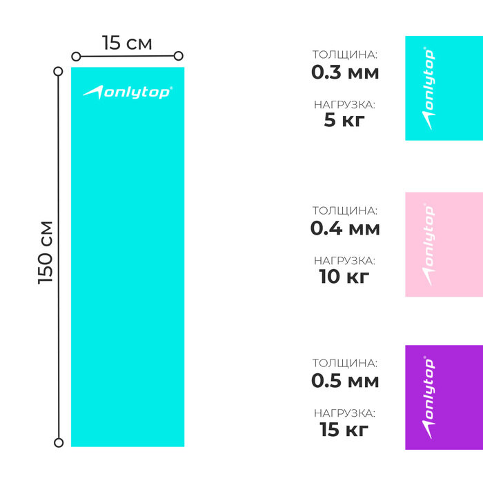 Набор из 3 эспандеров ленточных 150 х 15 см, толщина 0,03, 0,04, 0,05 см, цвета микс ONLITOP 3931198 .