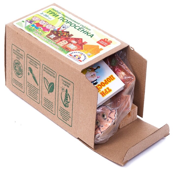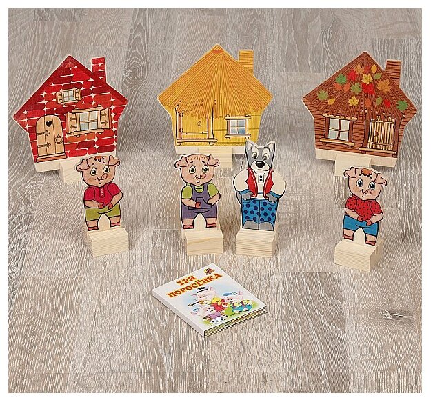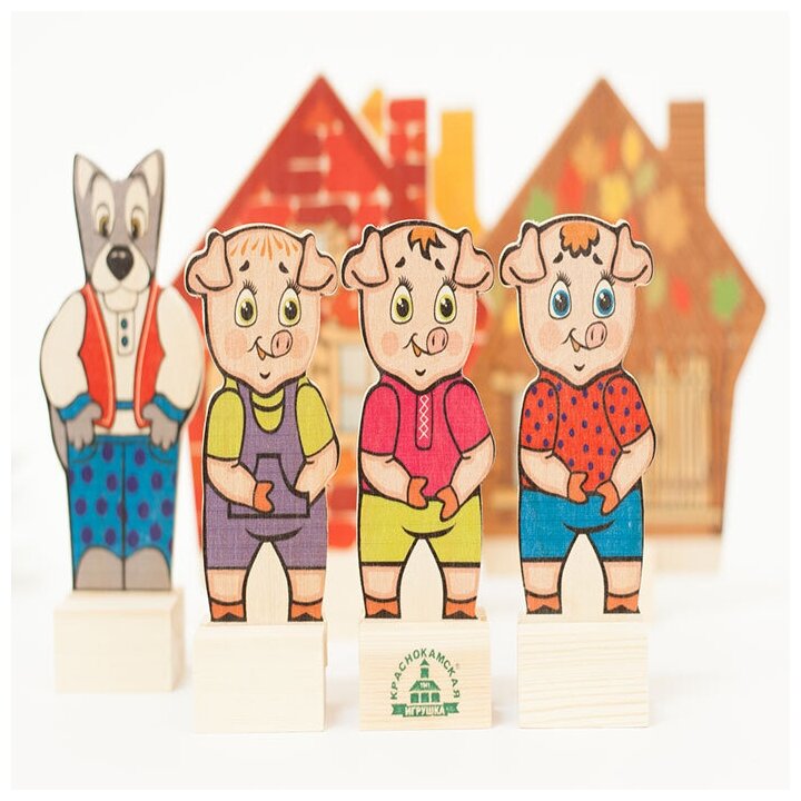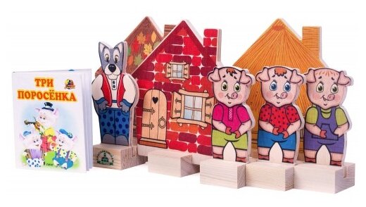 Набор сказочных персонажей, настольный кукольный театр Краснокамская игрушка "Три поросенка", 7 деревянных фигурок + сказка интересное: