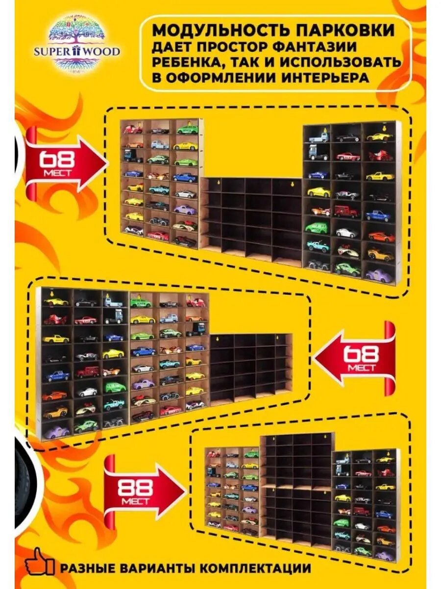 Полка - парковка, гараж для машинок вертикальная темная на 24 машинки интересное: