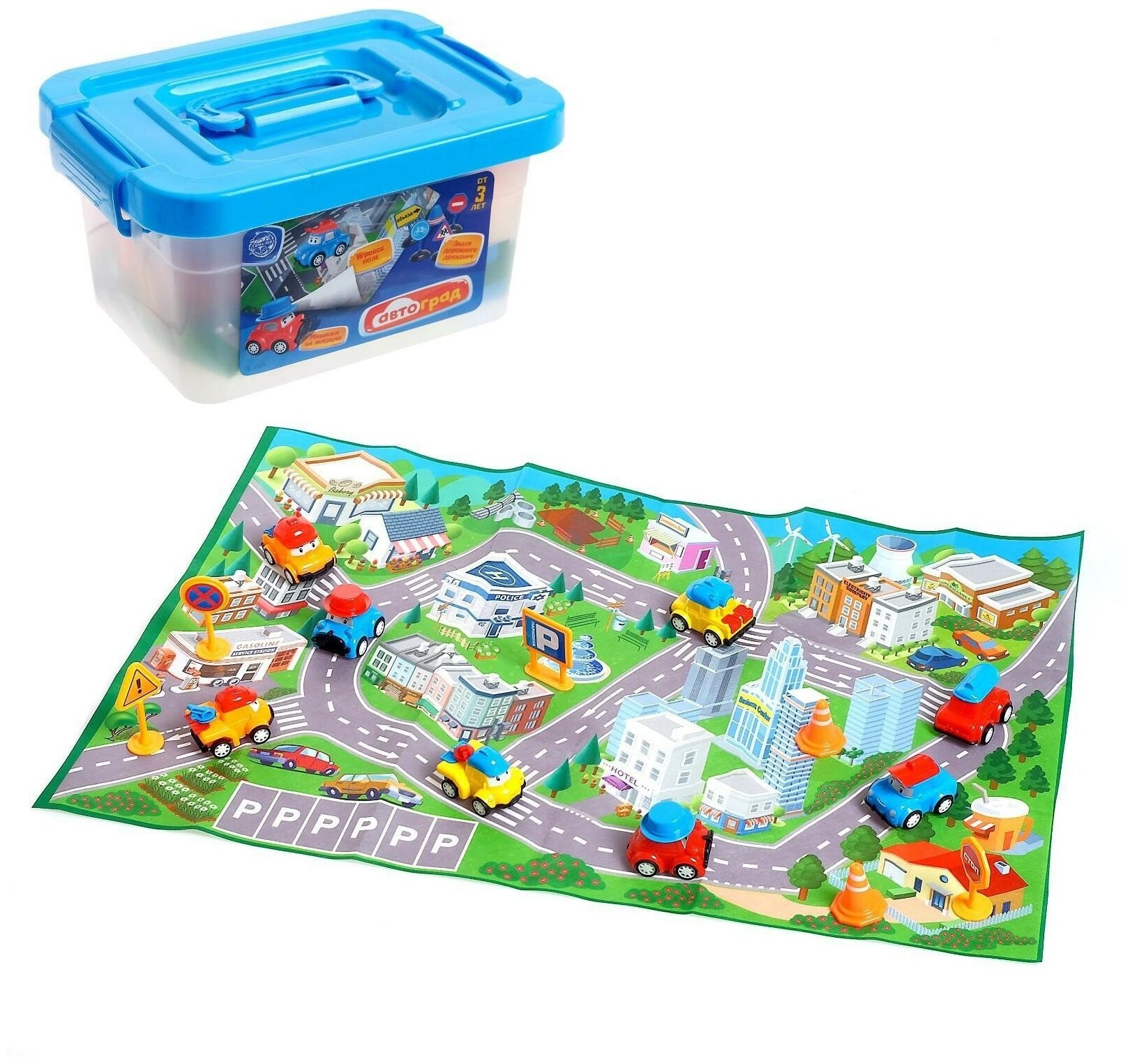 Набор инерционных машин Автоград «Город», 8 машинок, коврик и дорожные знаки