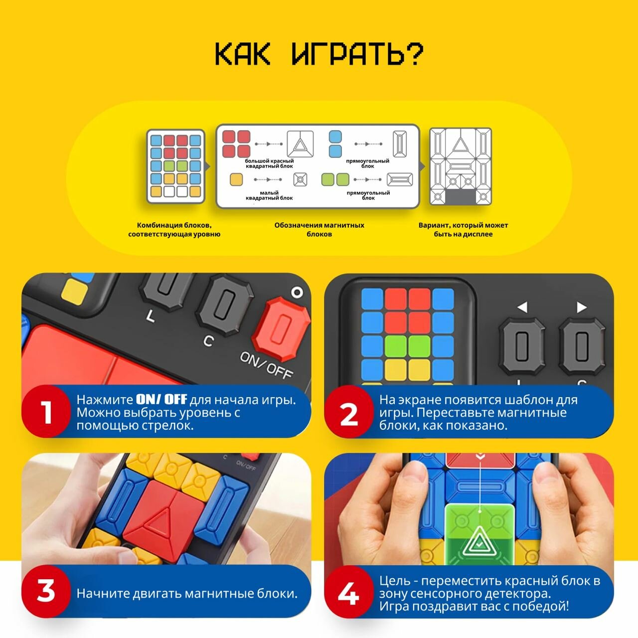 | Особенности | без наклеек / магнитный / несколько уровней сложности / питание от батареек |