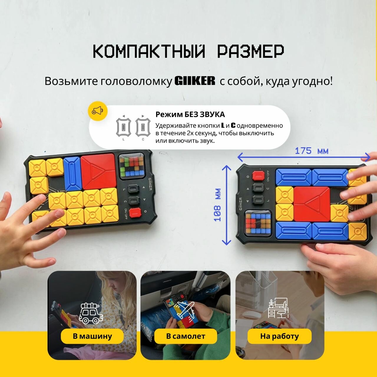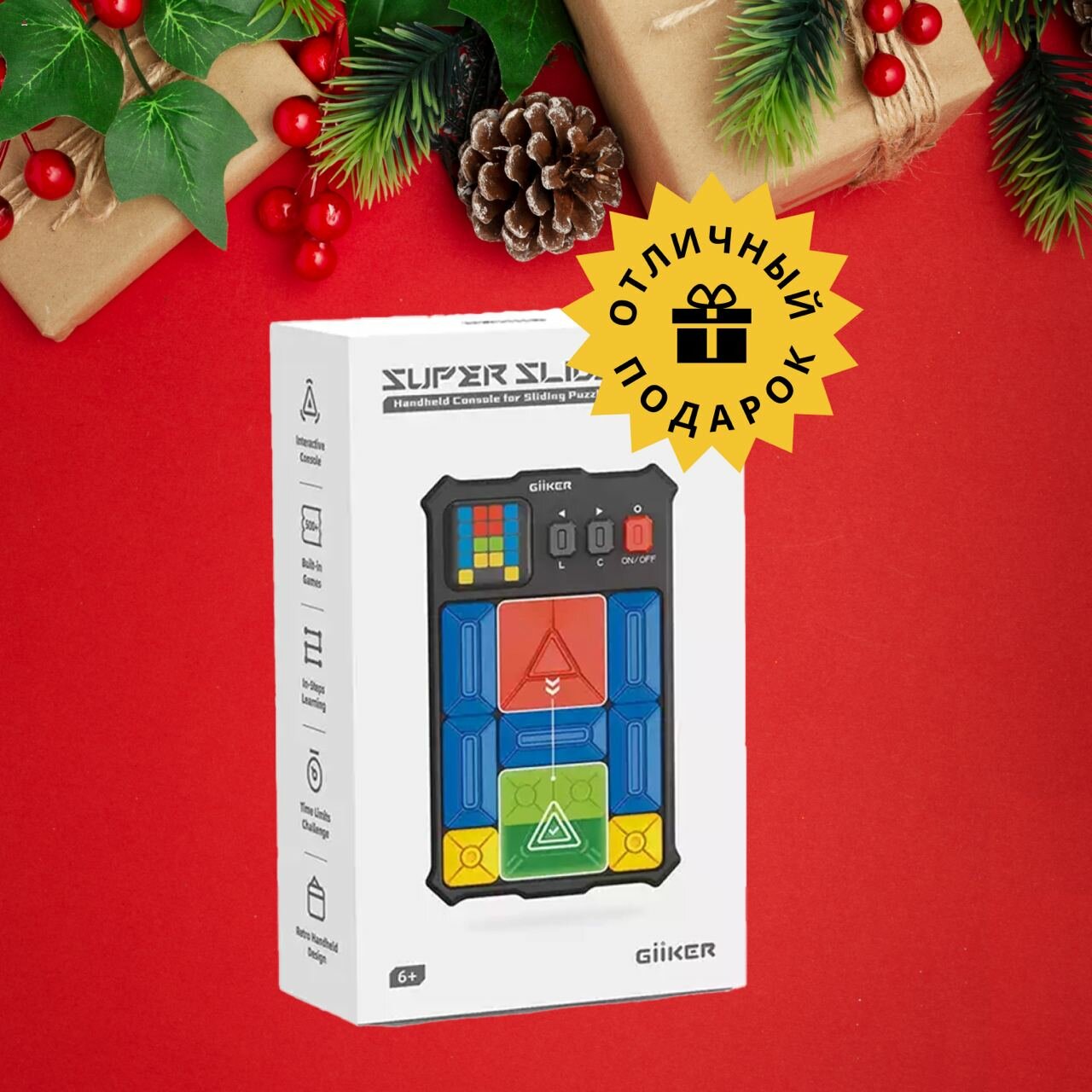 | Дополнительная информация | Головоломка GiiKER Super Slide - это электронный слайдер-пятнашка. По сути, данная игра является усовершенствованной версией всем известной игры "пятнашки", ведь это одна из самых известных логических игр в мире. GiiKER Super Slide помогает развивать логическое и пространственное мышление, мелкую моторику. Игроки могут соревноваться друг с другом, стараясь закончить игру за минимальное количество ходов или играть самостоятельно. Возьмите игру с собой в поездку, и Вы не заметите, как пролетит время в дороге! Вас ждет более 500 открывающихся заданий, от простого к сложному. |